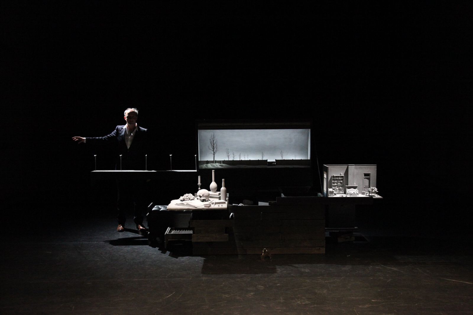 Waar het verhaal dit keer over gaat, wil ik niet kwijt. Sebastian, Tilda, een poes, een kist. Pieter De Buysser doet waar hij zo goed in is: hij vertelt. Tijdens het vertellen krijgt hij de ondersteuning van wat muziek en een bijzondere kist – een creatie van Hans Op De Beeck die tevens in de aankondiging staat. Eerst gesloten en in de loop van de voorstelling wint de rol van de kist meer en meer aan belang. Schuifjes klappen open, attributen worden uitgesteld, steeds in perfecte balans met en als versterking van de woorden van Pieter.