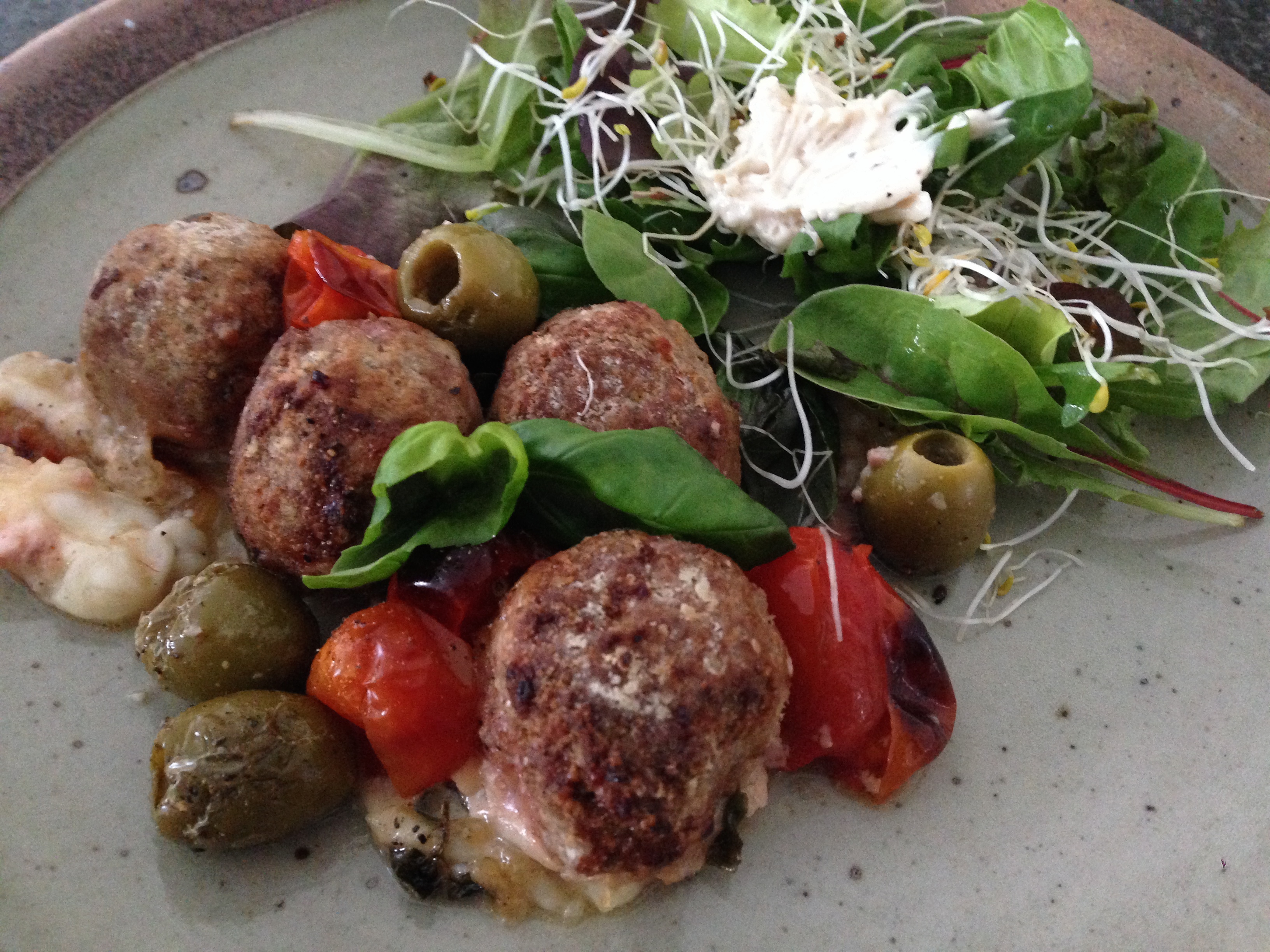 Zij die ooit samenwoonden met mij – en dat gaat verder dan mijn lief, wegens acht jaar residerend in een beluikje – kennen ongetwijfeld Jamie’s ballen. Een recept van Jamie Oliver dat balletjes in tomatensaus wat Italiaanse schwung geeft, met mozzarella en parmezaan in de oven. Iets wat ik indertijd vaak klaarmaakte. In het kookboek ‘Simple dinners’ van Donna Hay staat een vergelijkbaar gerecht, net iets meer uitgepuurd.