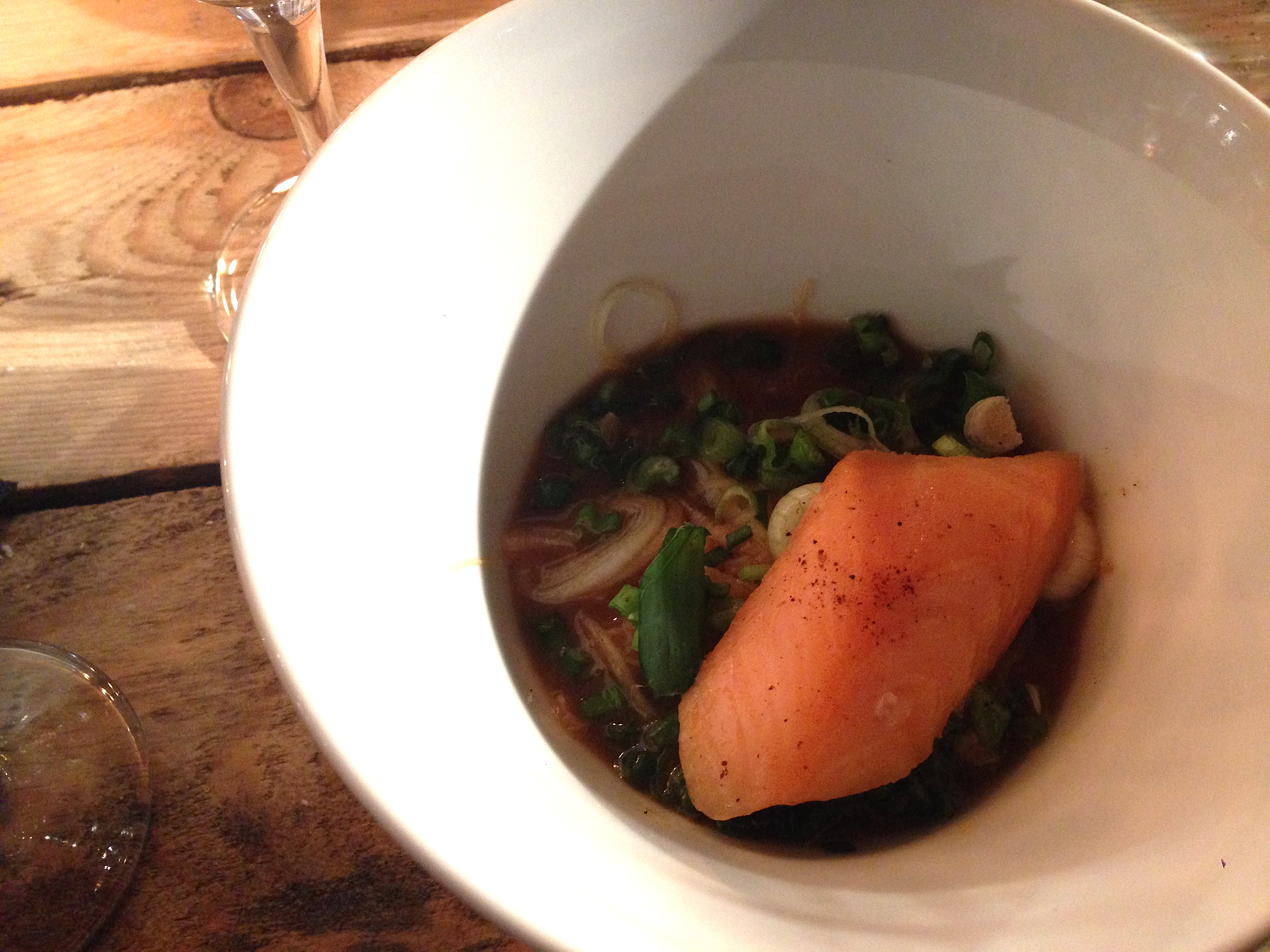 Moelleux van zalm, ingedikte jodiumrijke jus