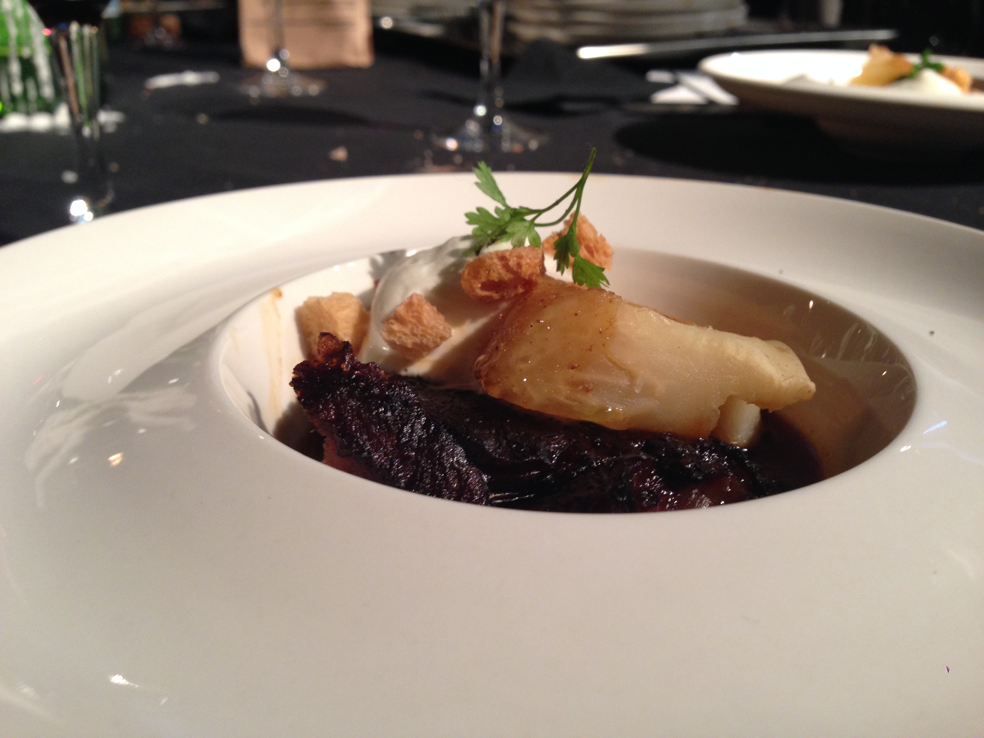 Als enige opmerking van zowel het gezelschap als mezelf vind ik dat dit evenement toch iets te dicht blijft aanleunen bij de traditie van de Franse keuken. Hiermee bedoel ik dat we soms de hedendaagse frisheid van pakweg de Flemish Foodies missen. Ik heb een paar keer letterlijk gezegd dat ik behoefte had aan een licht bord met vis, groen en niet veel meer. De enige die eigenlijk echt in deze lijn past, is Arabelle Meirlaen. Zelfs bij de sint-jakobsvrucht van Yves Mattagne ligt foie gras met een donkere jus. Typeer het misschien als meer Michelin dan Gault&Millau – al zal zeker niet iedereen hier mee akkoord gaan…