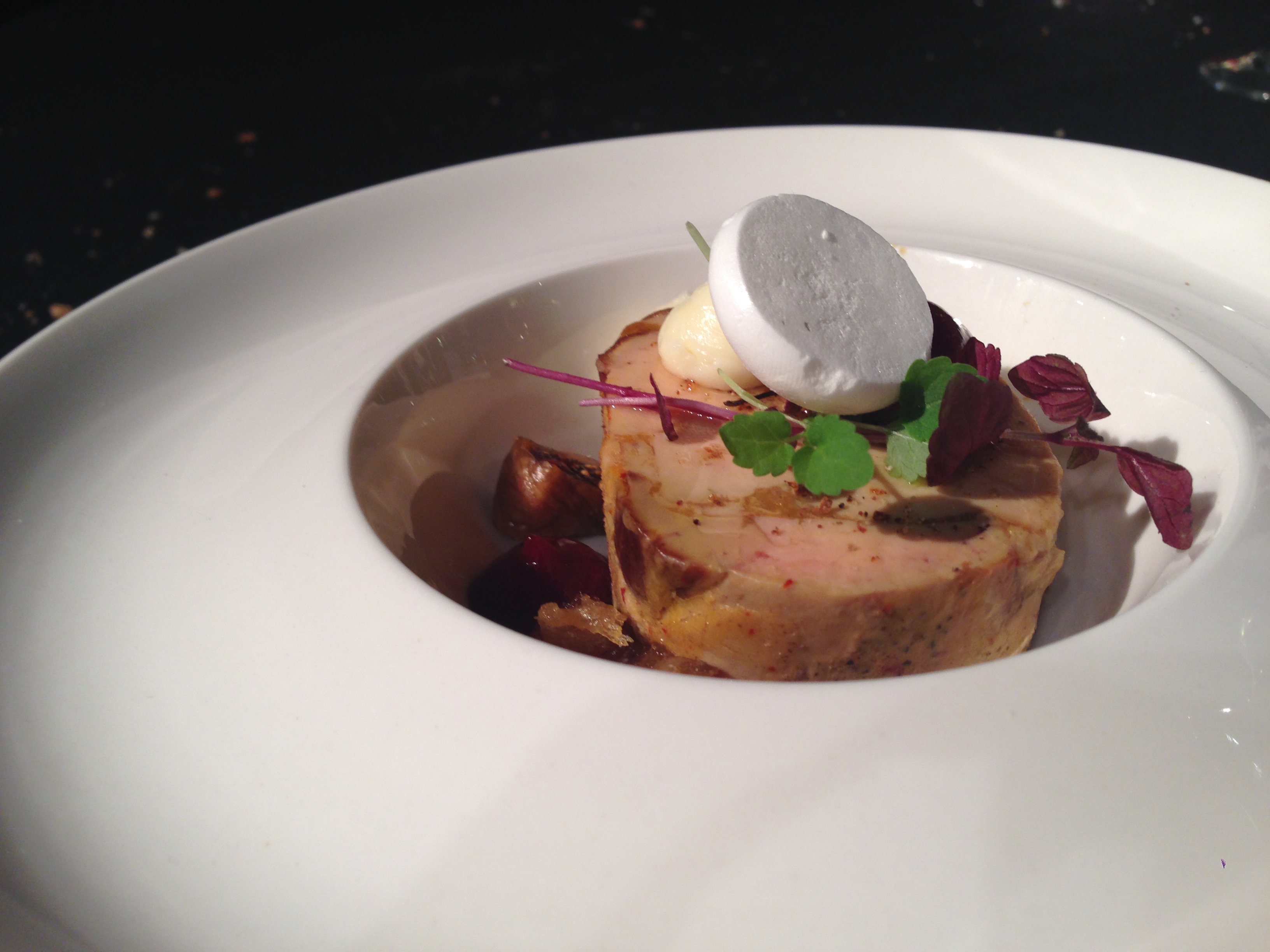 Gekonfijte ganzenlever in Alpage AOP Gruyèreroom met balsamico, Medjoul dadel | Laury Zioui van L’Eveil des Sens