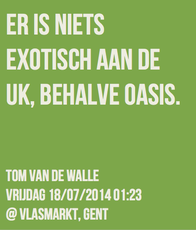 Gentse Feesten 2014 | Uitspraak van de dag 1 #gf14 Geplaatst op 19/07/2014 door elidesc Gerelateerde blogposts:De P van Pintjes, pintjes, pintjes #GF15Mijn Gentse Food Feesten 2017 | Nachos met guacamole @ Parking Petanque #gf17En cherchant... Anita Demassieux