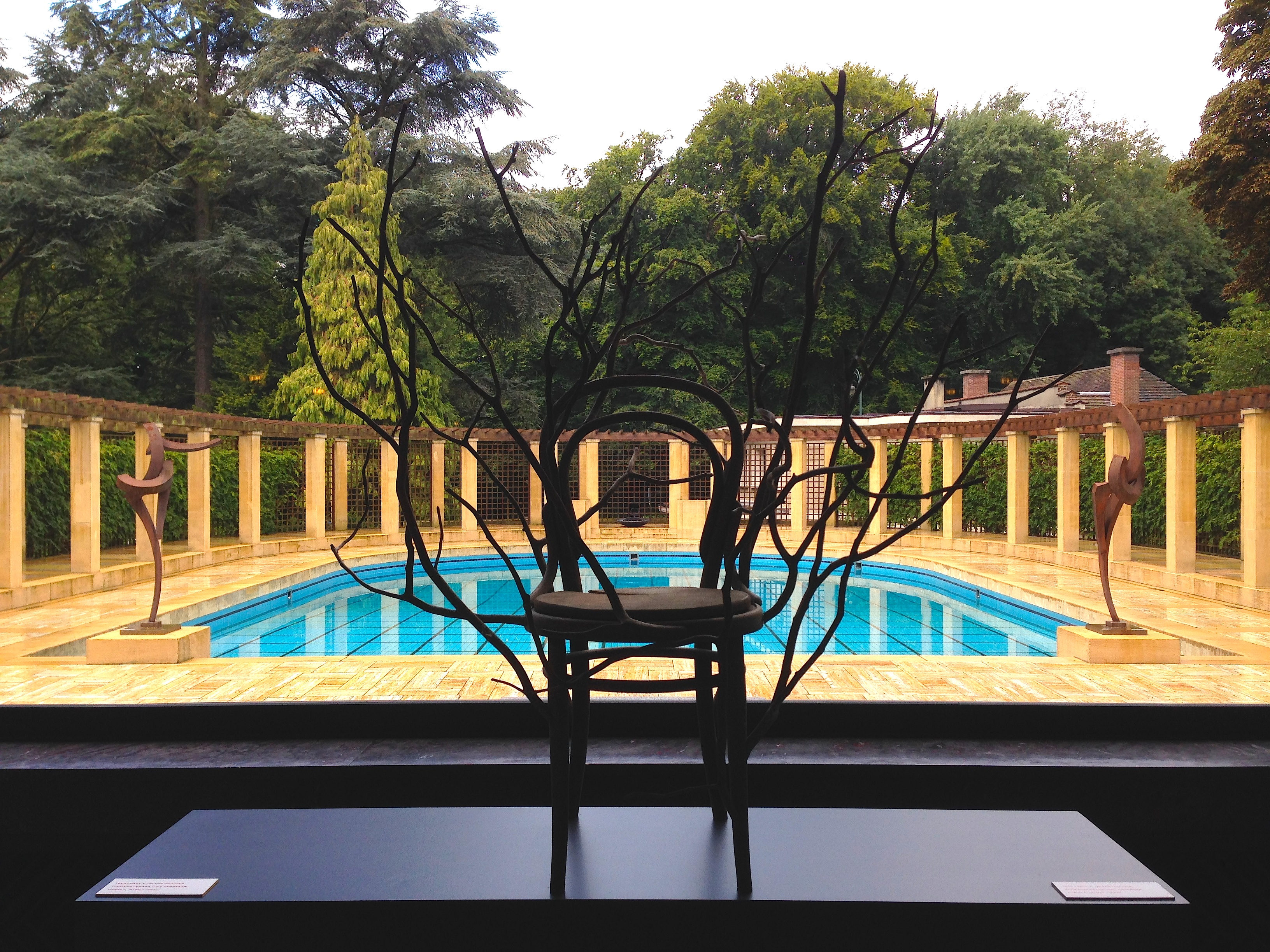 Als buitenstaander ontwaar ik op de Avenue Franklin Roosevelt vlakbij het Ter Kamerenbos in de eerste plaats een indrukwekkend art deco gebouw waar momenteel toevallig een expo loopt die mij wel aanspreekt ‘Tussen twee stoelen: een boek’. Ik moet eerlijk toegeven dat de betekenis van de titel mij wat ontgaat. Misschien een Franse uitdrukking die wat ongelukkig naar het Nederlands vertaald is. Maar de rode draden zijn overduidelijk: stoelen en boeken, twee objecten die mij boeien.