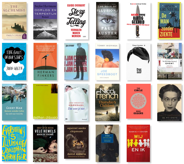 Tot mijn favorieten van 2014 kroon ik Daar is hij weer en De cirkel. Ook Geert Mak kon mij overtuigen met een andere genre dan de romanstijl die ik gewoon ben. Als grootste tegenvallers twee boeken met een mes als rode draad, in de titel (Jij bent mijn mes) en op de cover (Hartig gekruid). Verder graag een applausje voor de Vlamingen die mijn boekenjaar een extra lading gaven: merci Saskia De Coster, dankjewel Griet Op De Beeck en bedankt Stefan Hertmans.