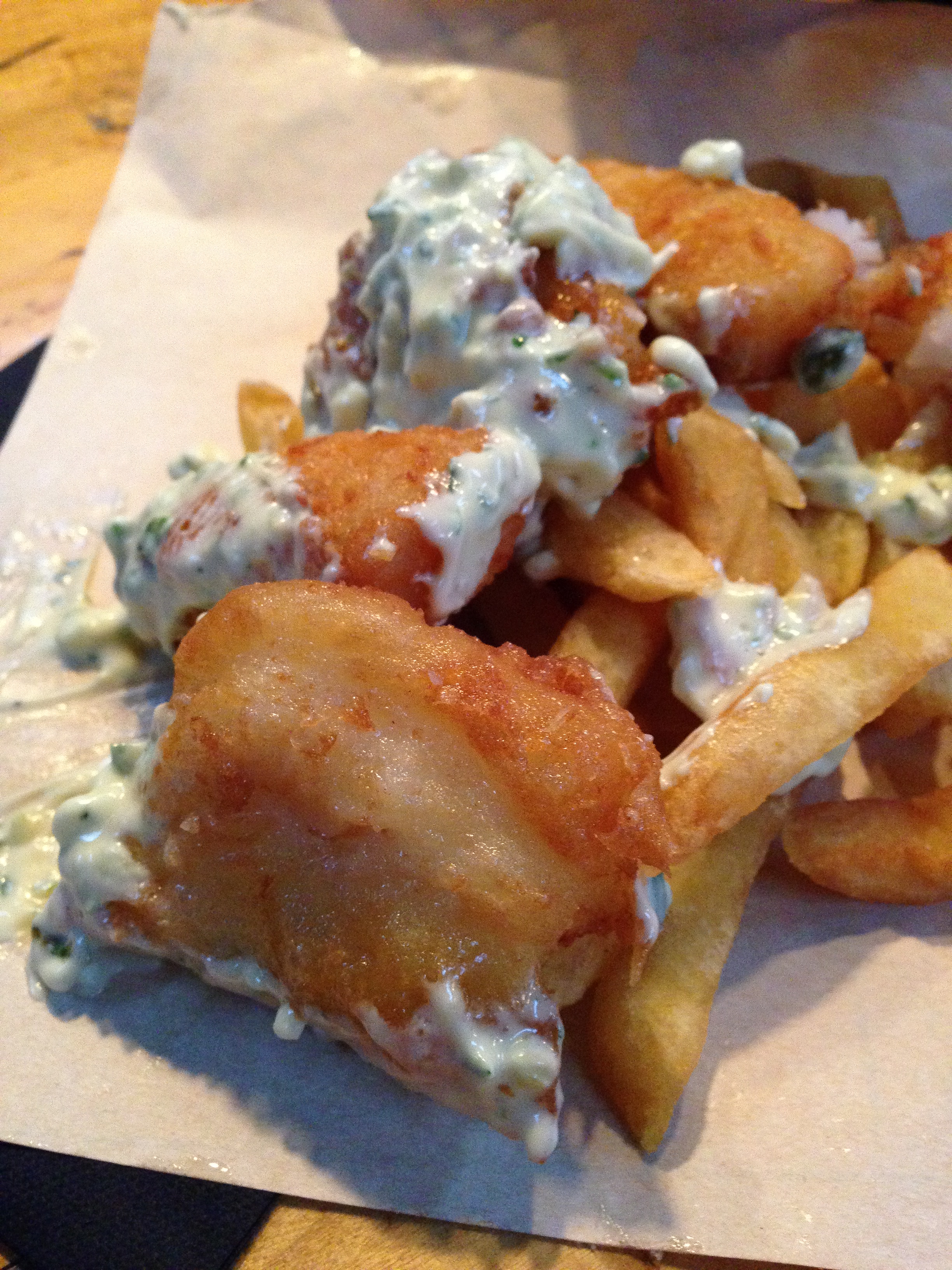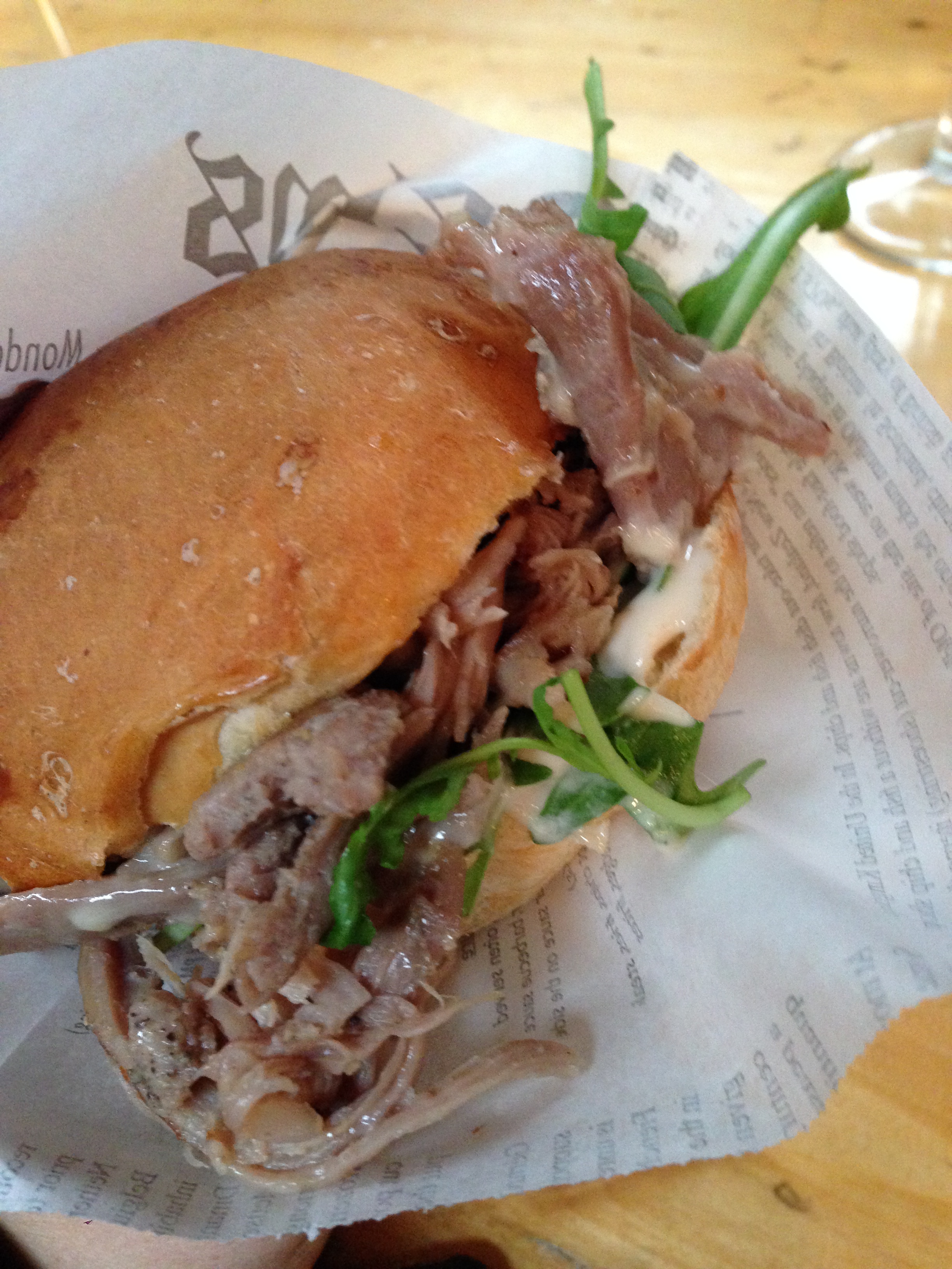 Vergezeld door Spaanse rosé en Vedett, allemaal in glas geschonken.