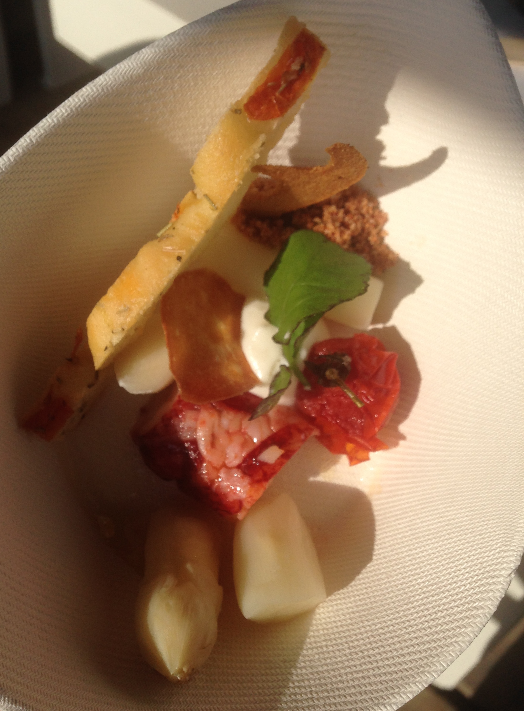 Gerookte kreeft, burrata, vintage-tomaat en jus van rauwe asperge