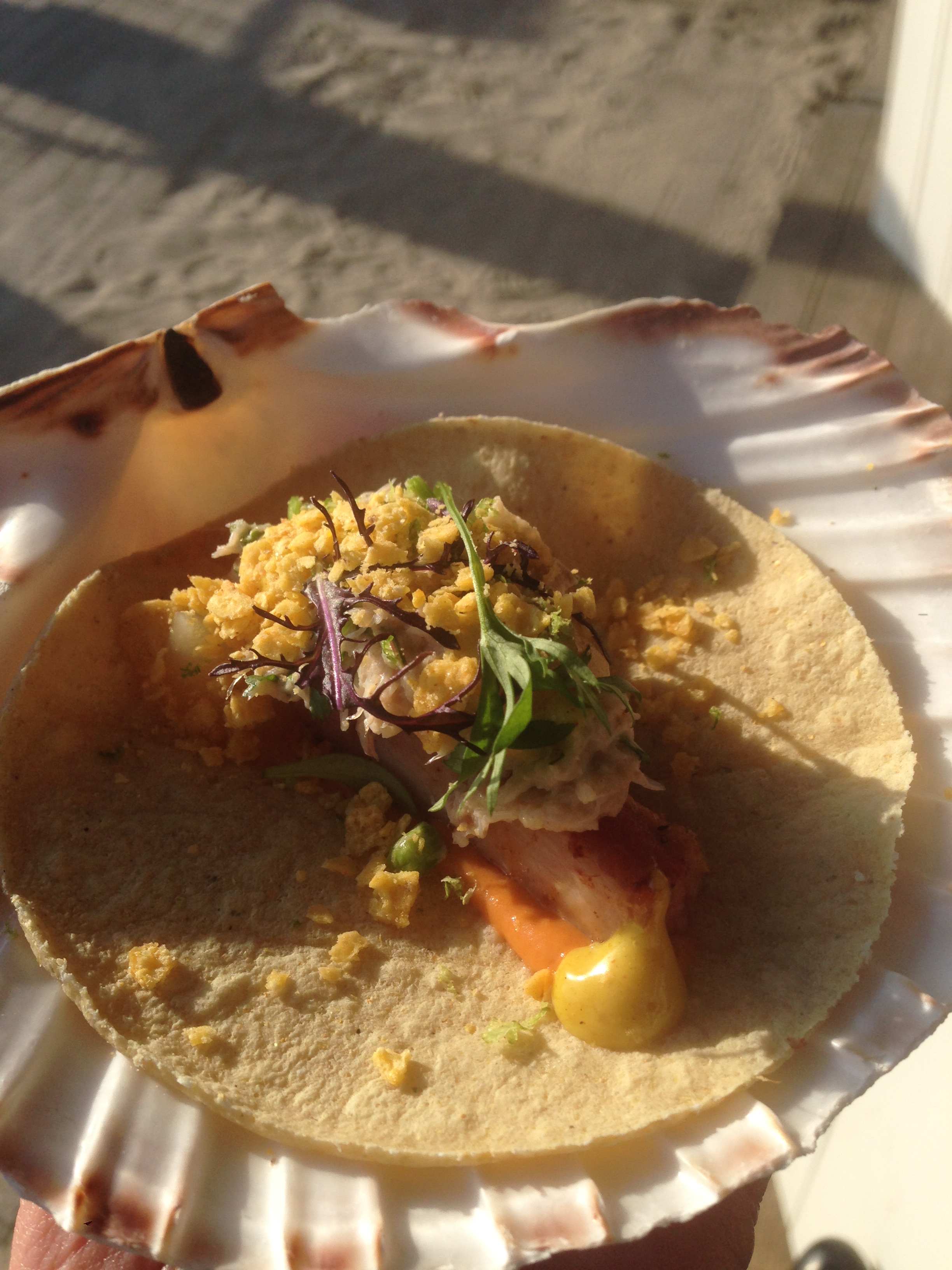 Ceviche van zwarte ombervis, geparfumeerd met passievrucht, koriandercress en gefrituurde zoete aardappel | door Wout Bru