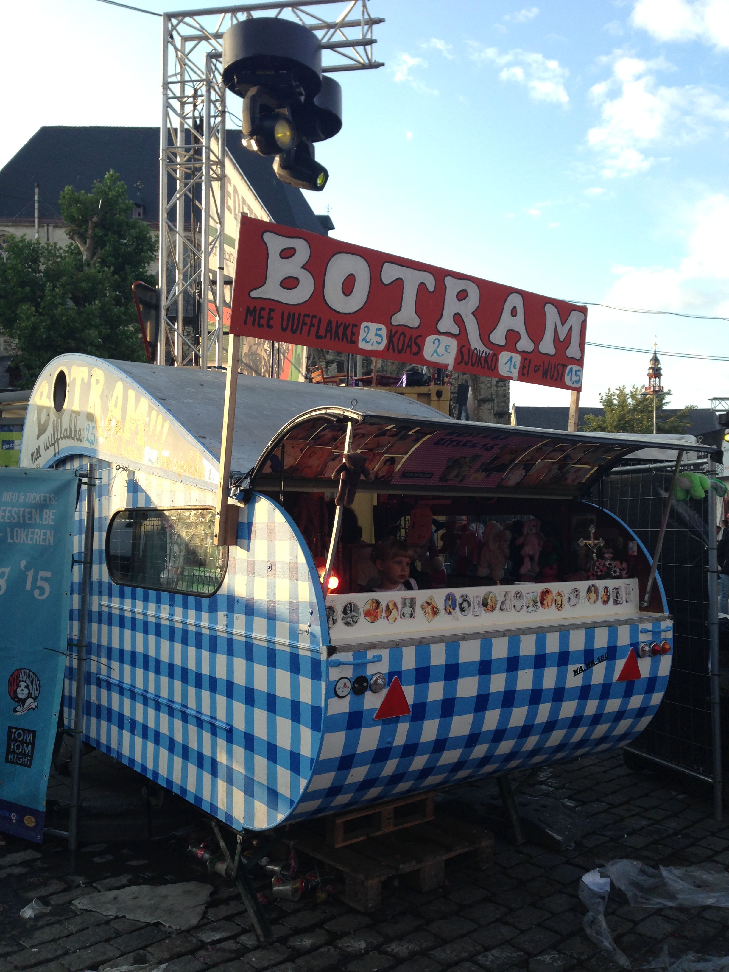Sinds ik-weet-niet-wanneer staat op de Vlasmarkt het Botramkot, een caravan waar je voor € 2,50 een boterham met uufflakke of koas eet. Ook een exemplaar met sjoko, een hardgekookt eitje of droge worst (€ 1,50) staan op het menu.