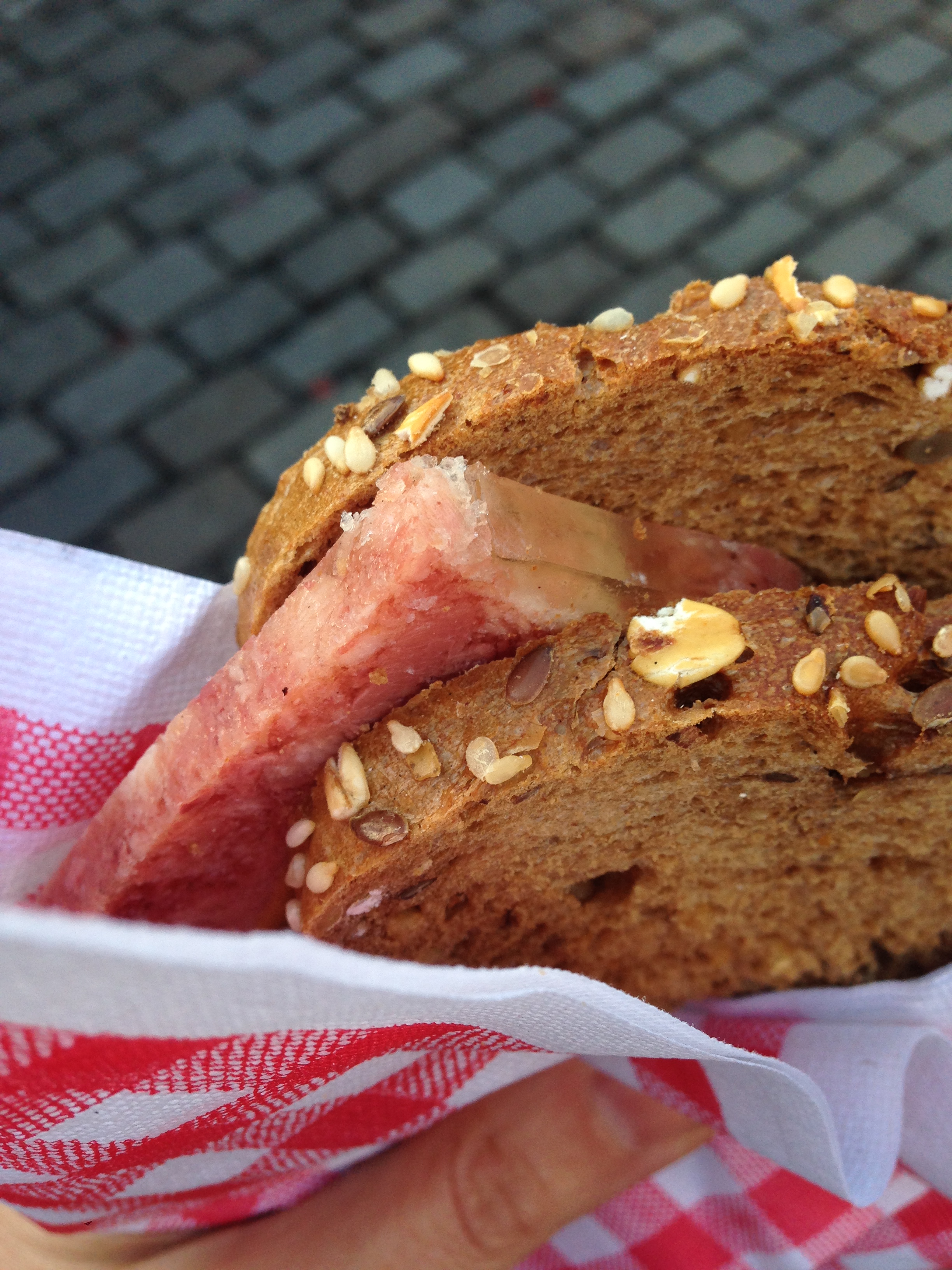 “Met mosterd?”, vraagt ze. Wij smelten en knikken van ja. Ze smeert en rekent af als een grote dame. En ik at met smaak deze heerlijke eenvoud…