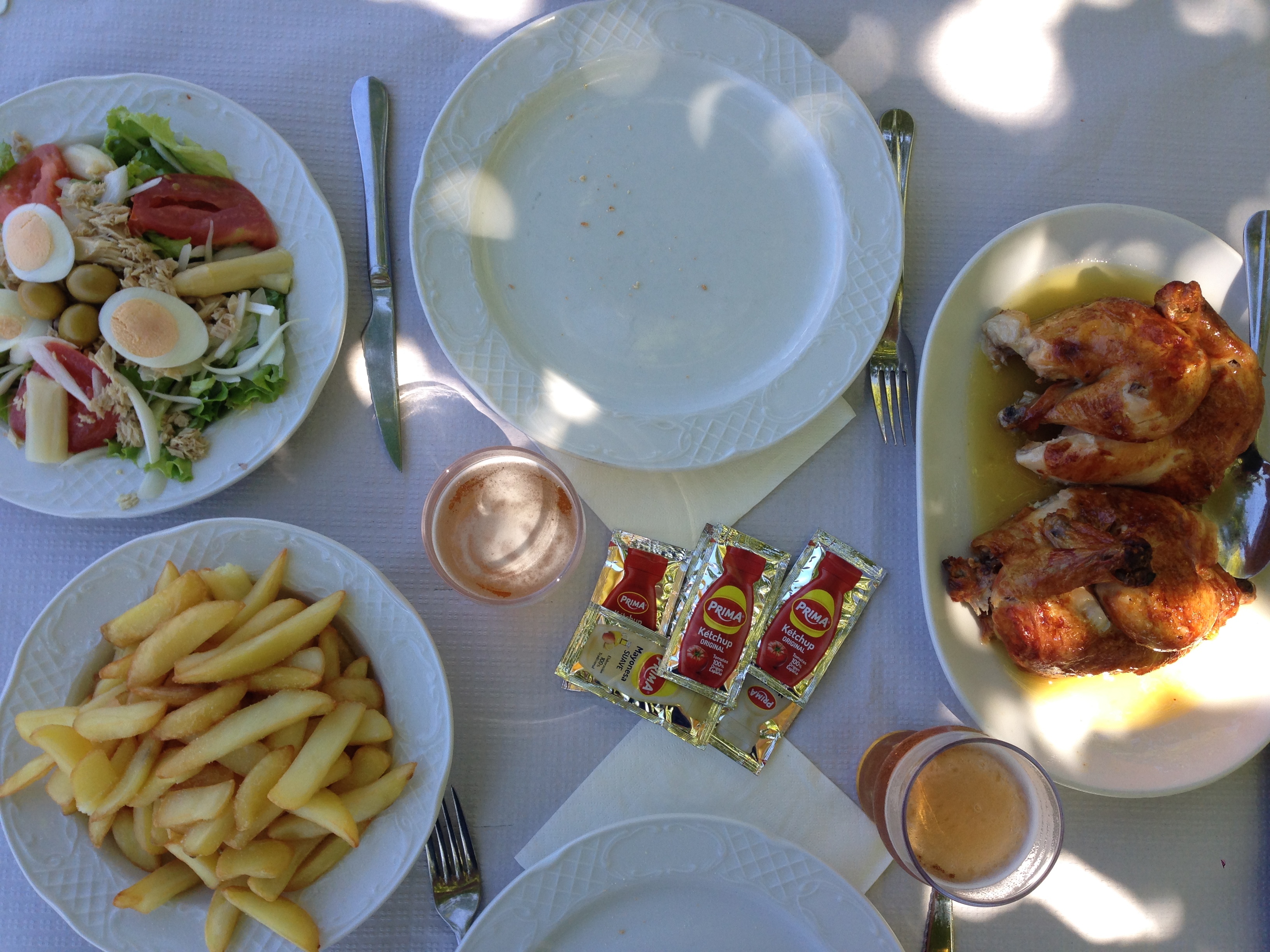 Je verwacht op een camping niet meteen een uitstekend restaurant. Al vanaf de eerste middag zien wij echter dat de kantine en in het bijzonder hun pollo asado – kip aan ’t spit, een zwak van mijn meneer – erg populair is. We besluiten om gewoon mee te doen, met als gevolg dat we de rest van de dag eigenlijk niets meer kunnen presteren.