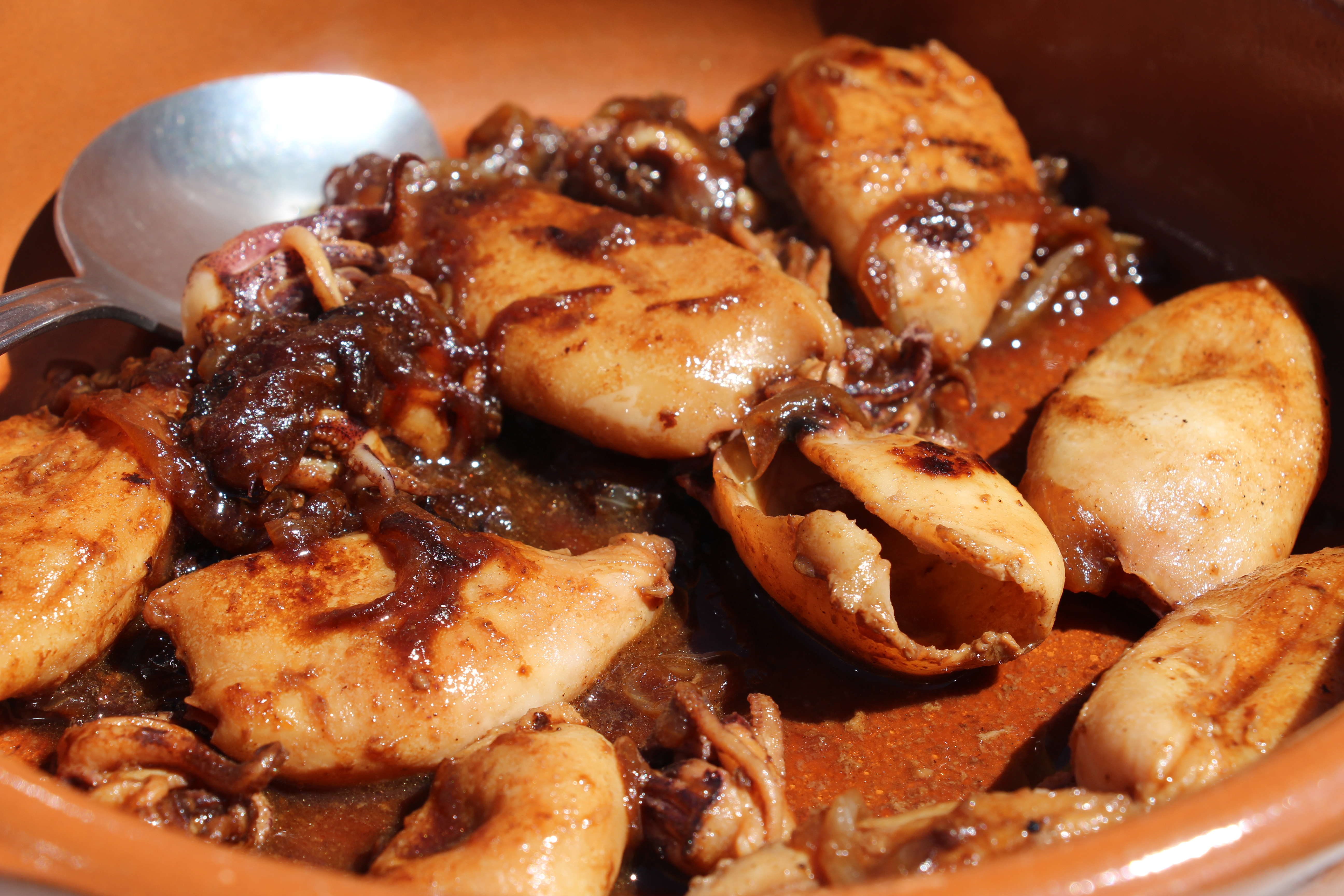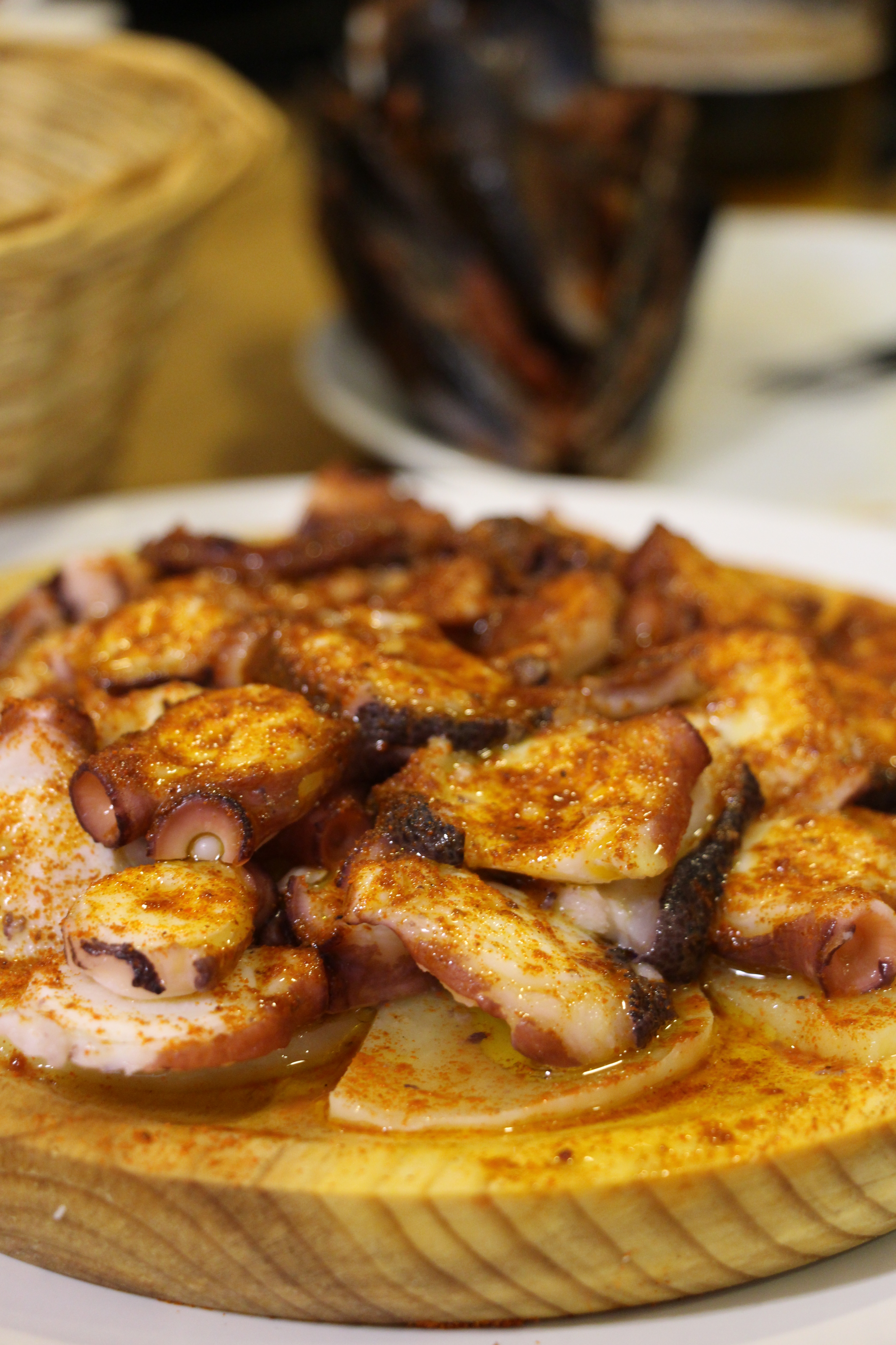 Nog een mejillonera, oftewel mosselkot! Daar kijken we eerst verbaasd op dat de bereide mosselen met hun garnituur er consumeerklaar liggen en in de microgolf opgewarmd worden. Tegelijk moeten we toegeven dat dit niets significants afdoet aan de smaak van de mosselen. Verder laten we ons verleiden door de pulpo: die wordt geserveerd op een houten plank met onderaan schijfjes aardappel, dan de inktvis en tot slot paprikakruiden. Wederom zo lekker dat we er de volgende dag opnieuw komen.