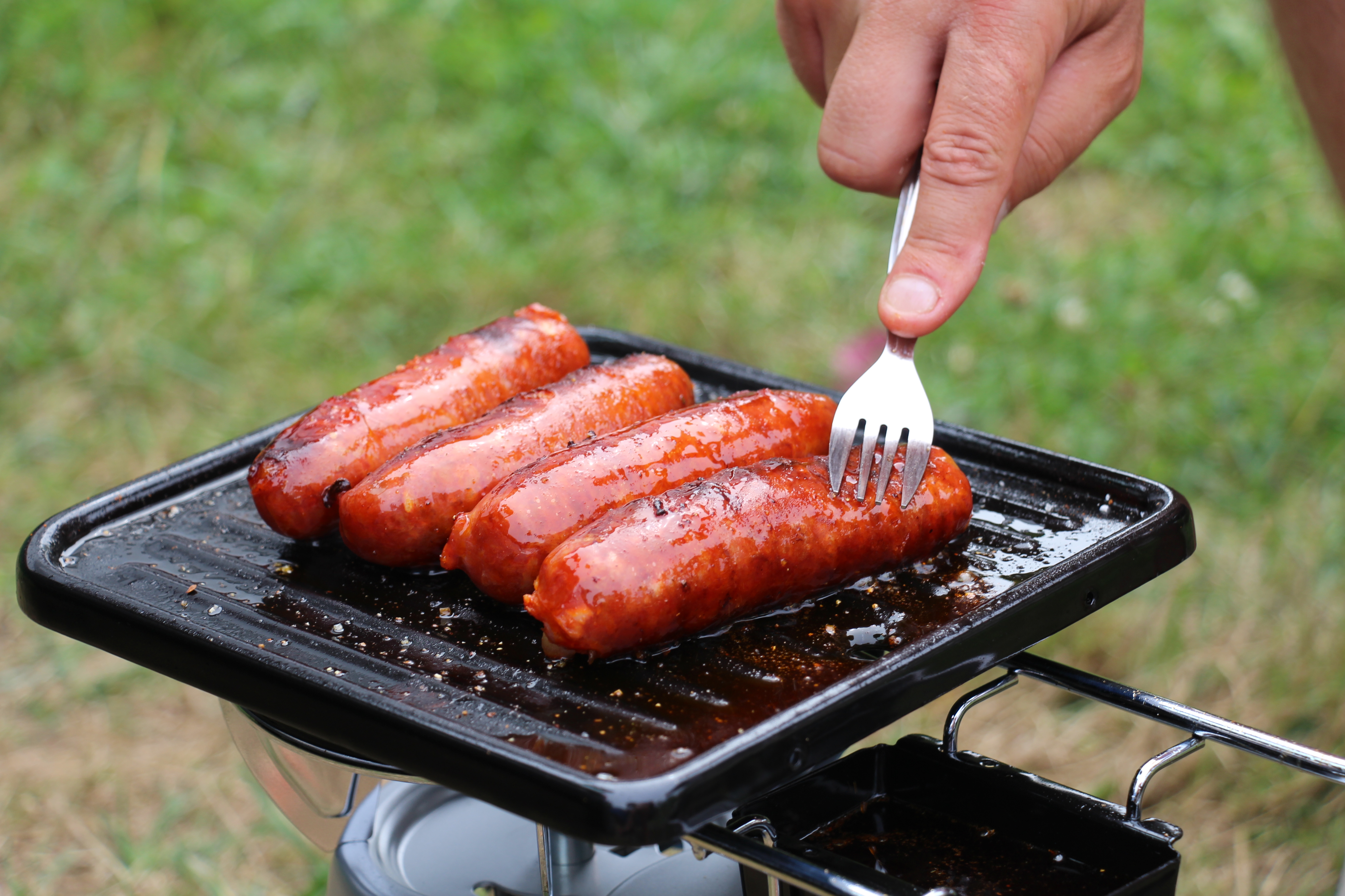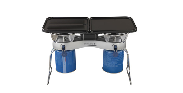 Tot slot amuseerden we ons met ons nieuwste kampeerspeelgoed: een kookvuurtje van Campingaz met twee gaspitjes waar je ook grillplaten op kunt monteren.