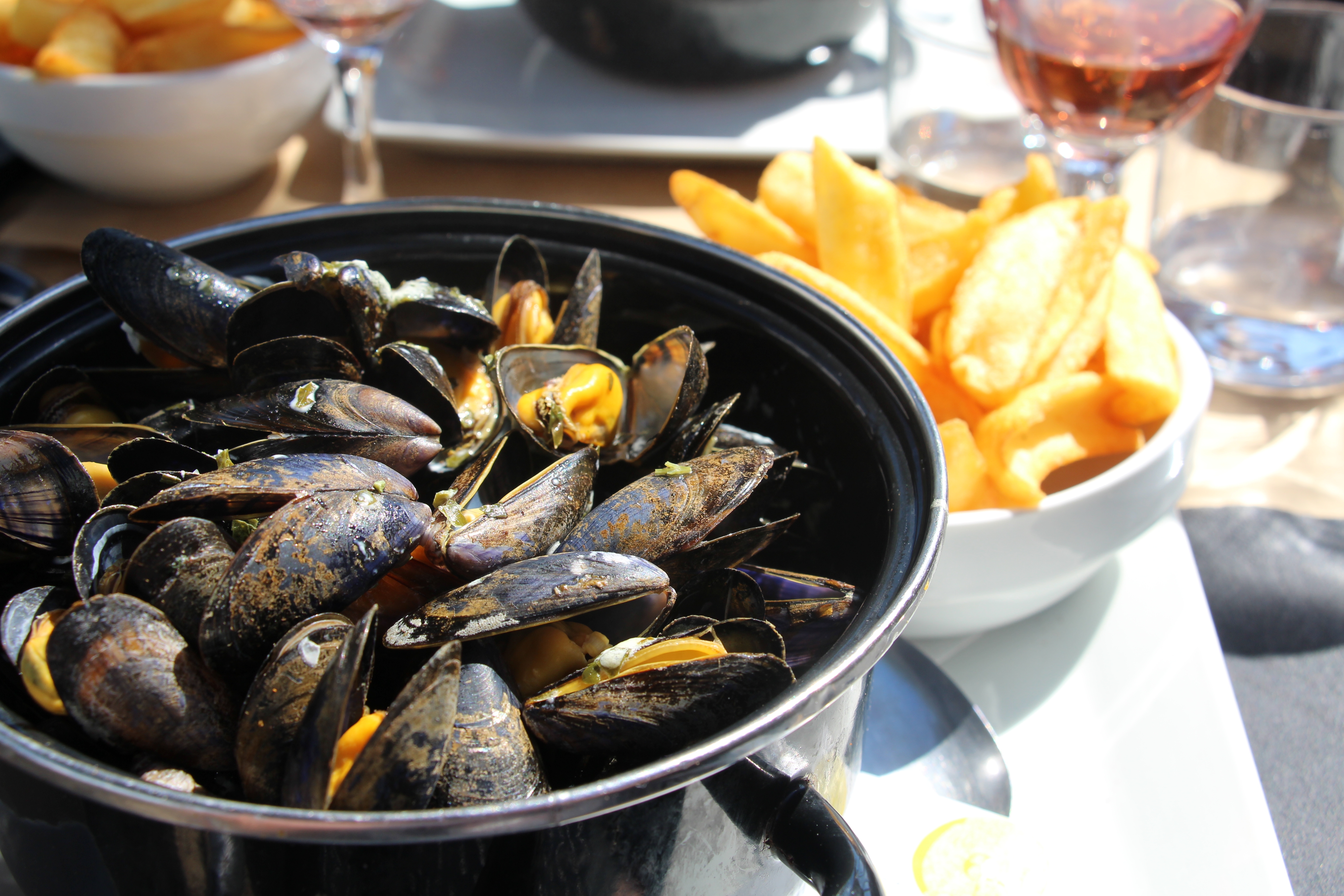 Op dit eenvoudig lunchadresje eten we tijdens een fietstocht op Île de Ré mosselen als lunch. Geen idee of dat door het fietsen komt, maar deze kleine Bouchotmosseltjes à la crème et persillade frites voor € 13 smaken ons enorm.