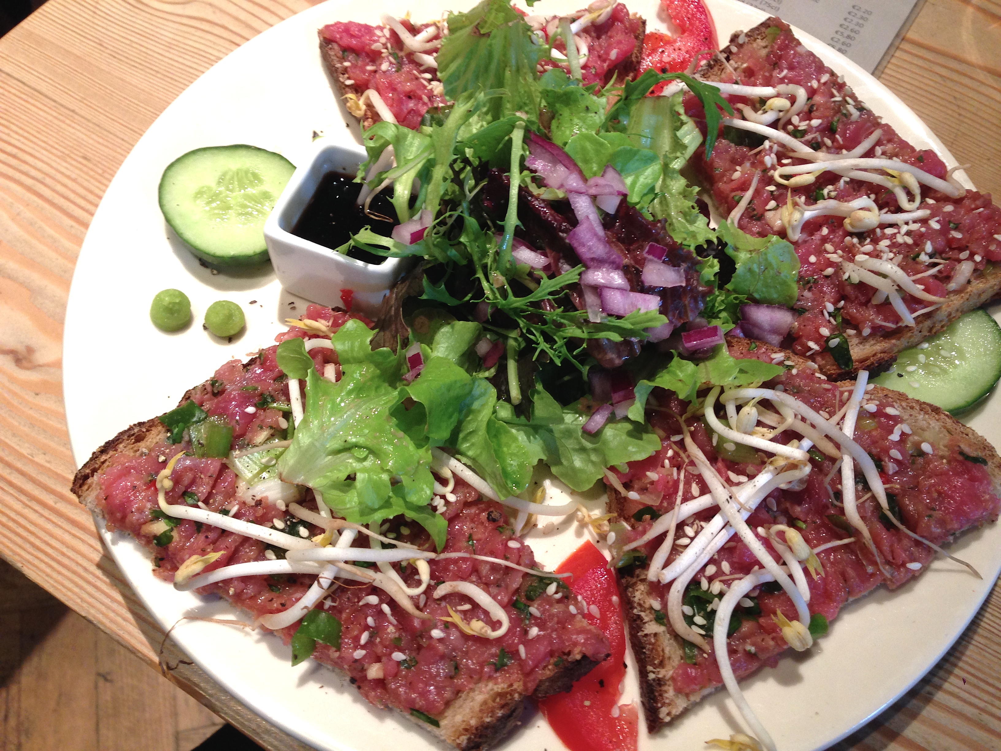 Bij de delicatessenzaak Cru van de Colruyt hoort tevens een lunchplek Cuit. Ik at er vorige vrijdag voor het eerst, echter voorlopig zonder een blogpost te fabriceren. Deelbare bordjes met vlees, vis en groenten, dus ideaal voor zij die liever koolhydraten skippen…