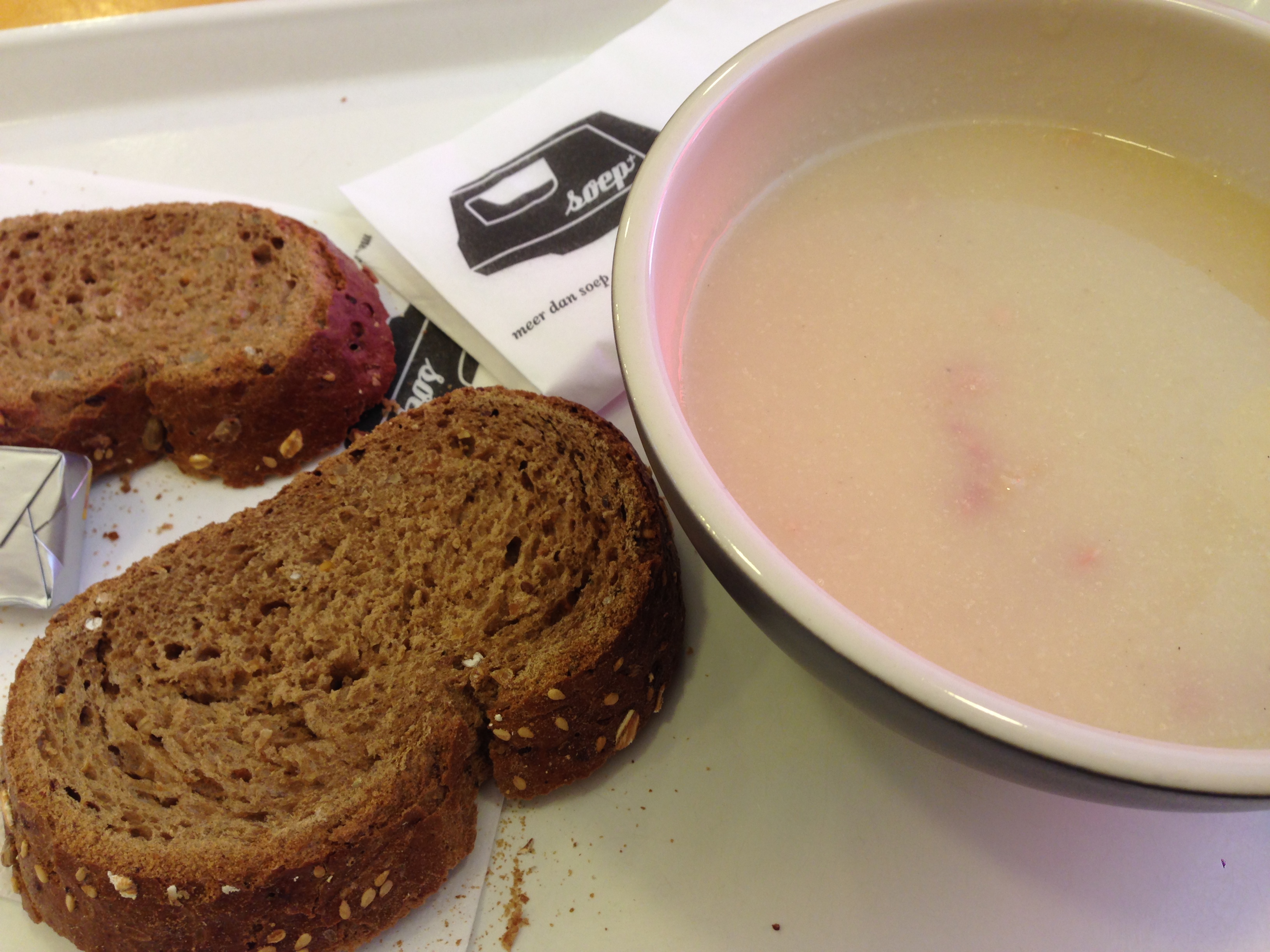 Eigenlijk meer een plek voor koffie en boeken, maar je kan er ook wekelijks een ander(e) soep / broodje krijgen.