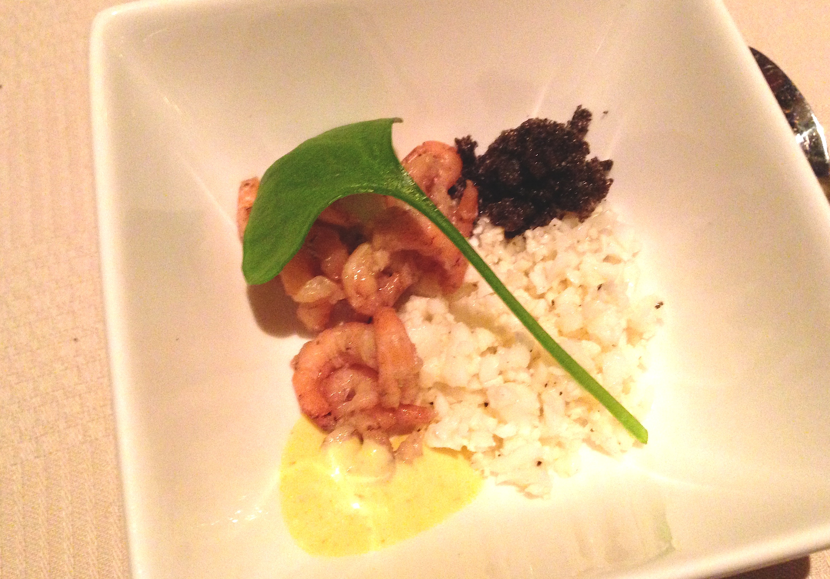 Een menu zonder dessert, ideaal voor twee mensen die niet meteen zoetekauwen zijn. Bovendien met anderhalve kreeft per persoon, als dat niet feestelijk is! We bestellen verder nog een fles witte huiswijn (lichte Chardonnay) en eenzelfde hoeveelheid spuitwater.