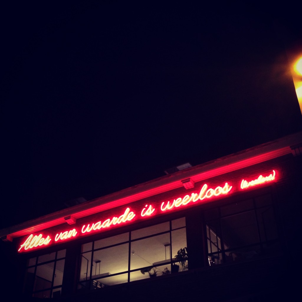 Van de eetkaart bestellen we de drie gerechten: dakgalbi kimchi slam (€ 8), dwaejibulgogi (€ 8) en mandu (€ 8). Daarnaast zijn er nog kimchi ramyeon (€ 5 – kimchi en paksoi met instantnoedels), maar we denken wel genoeg te zullen hebben met dat trio. We krijgen een letter E – toeval of niet, van Elise? – toegestopt die we moeten afgeven als het eten wordt geserveerd.