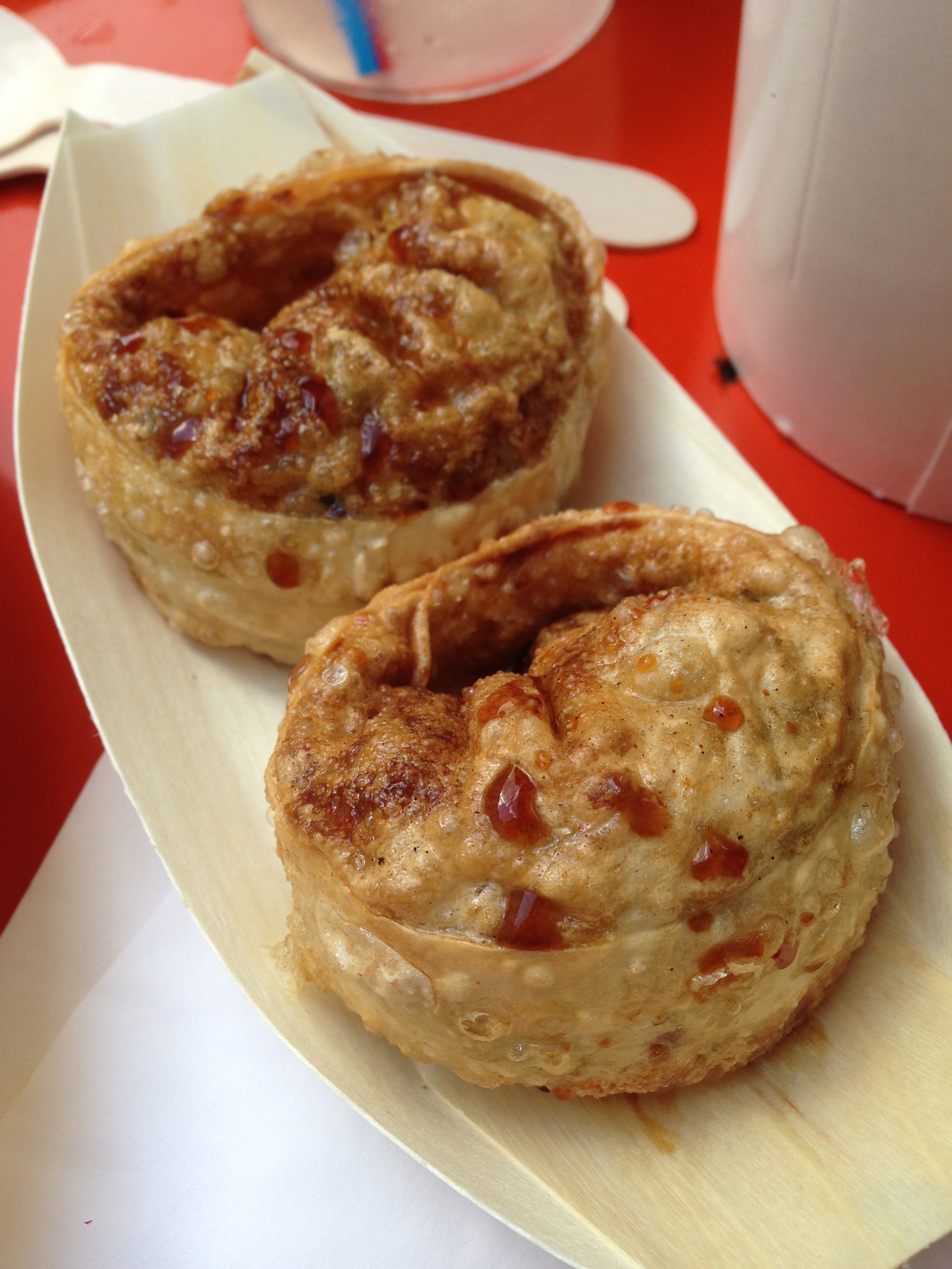 We beginnen met de middelste hap: de mandu of dumplings. Deze scoren altijd bij mij, zij het dat ik nog een groter zwak heb voor de gestoomde en dus niet gefrituurde exemplaren. Toch smaken deze pakketjes met vlees en groenten, zeker als we ze ook nog eens besprenkelen met sojasaus.