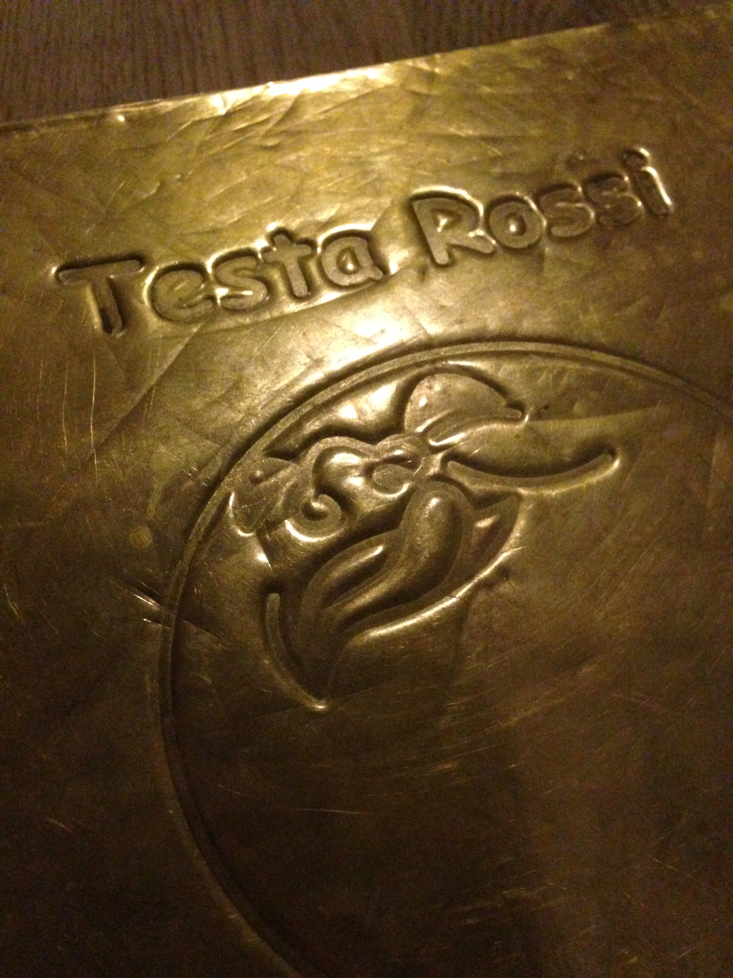 We hebben er afgesproken met een groep ex-collega’s en ik wandel iets voor tijd als eerste binnen. Er staat een tafel voor 12 personen gedekt in een deels apart zaaltje. Tegen de muur zie je achter een glazen wand een indrukwekkende verzameling wijn liggen, die je bij Testa Rossi trouwens ook kunt kopen of mits kurkgeld uitdrinken. Opvallend zijn ook de (lege) kratten West-Vleteren, bier waarvoor je vanuit Vilvoorde al enige moeite moet doen om het in handen te krijgen.