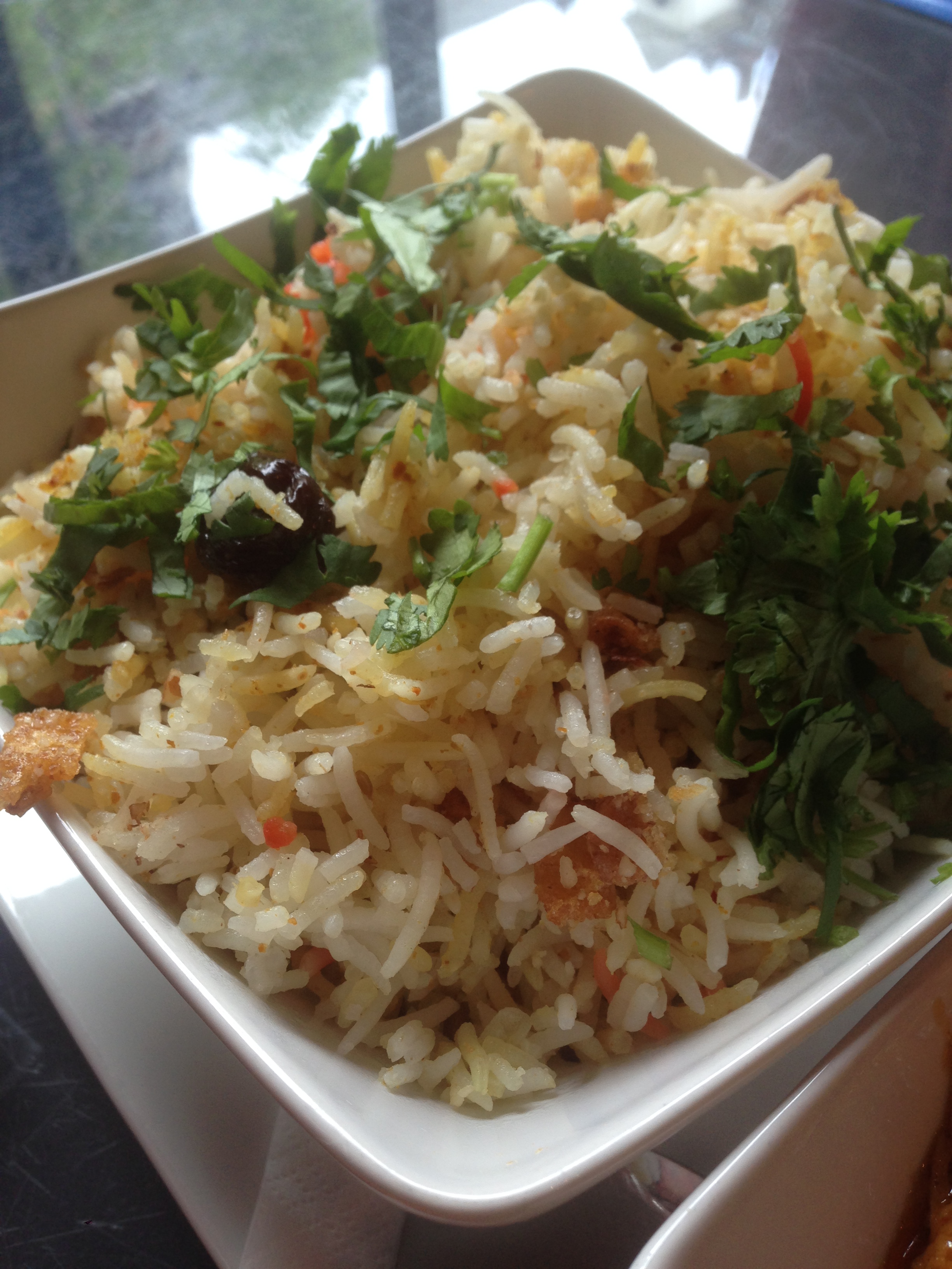 Daarbij vraag ik nog biryanirijst (€ 2), want dat moet apart besteld worden bij dit gerecht.
