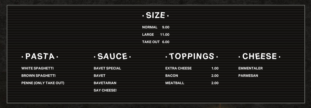 Spaghetti is voor veel Gentse studenten synoniem voor De Kastart, of omgekeerd. Je moet dus al over een portie lef beschikken om dat monopolie te willen doorbreken en het strijdwapen van Bavet lijkt helder: iets hipper dan De Kastart, veel meer 2015. Een eerste zaak opende recent aan de Muinkkaai, een tweede zou snel volgen op de Nederkouter.