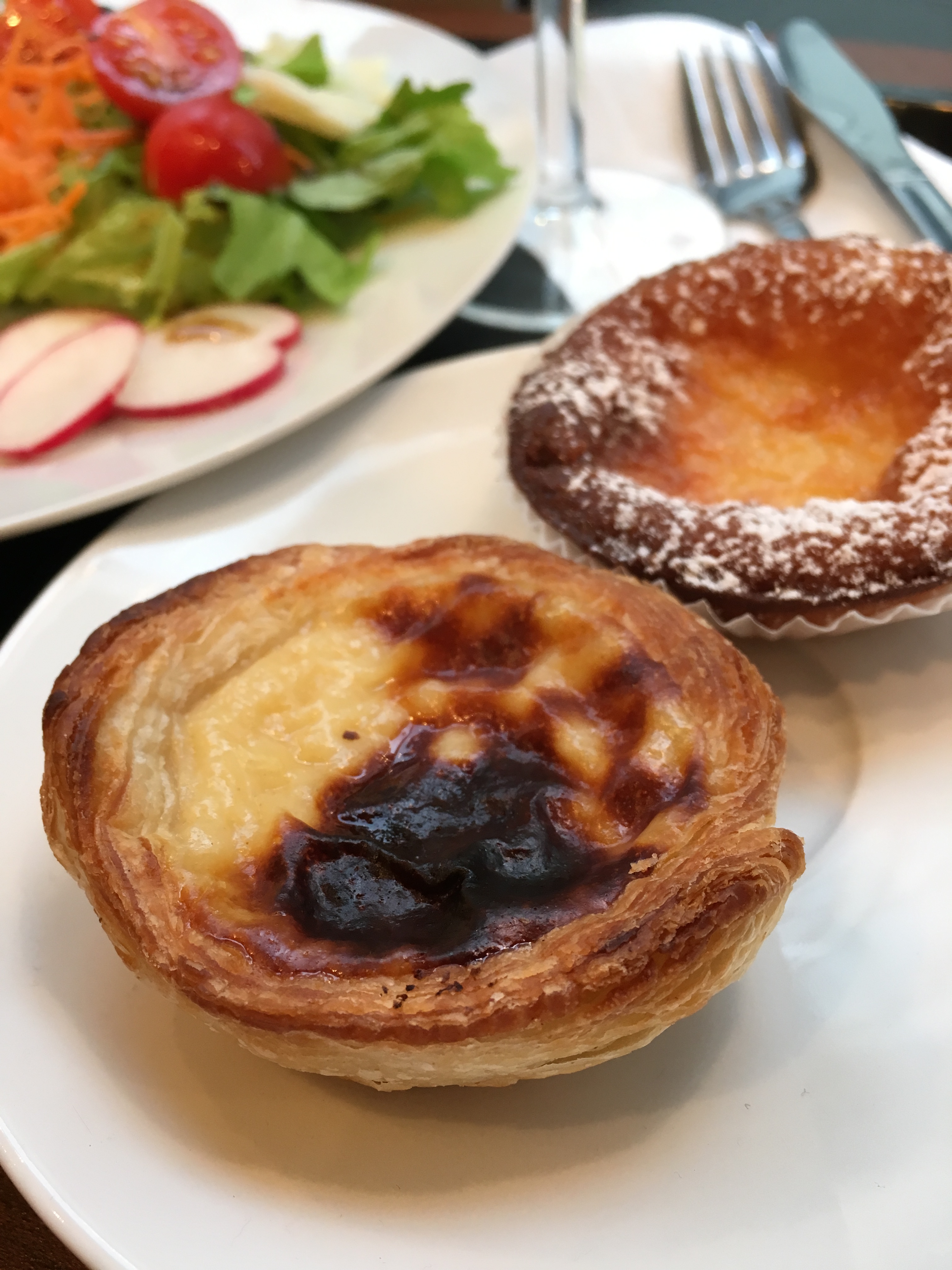 De taartjes deel ik eerlijk met mijn compagnon, al moet ik toegeven dat het mij geen enkele moeite gekost zou hebben om ze alleen naar binnen te spelen. Vooral de pastel de nata doet z’n reputatie alle eer aan…