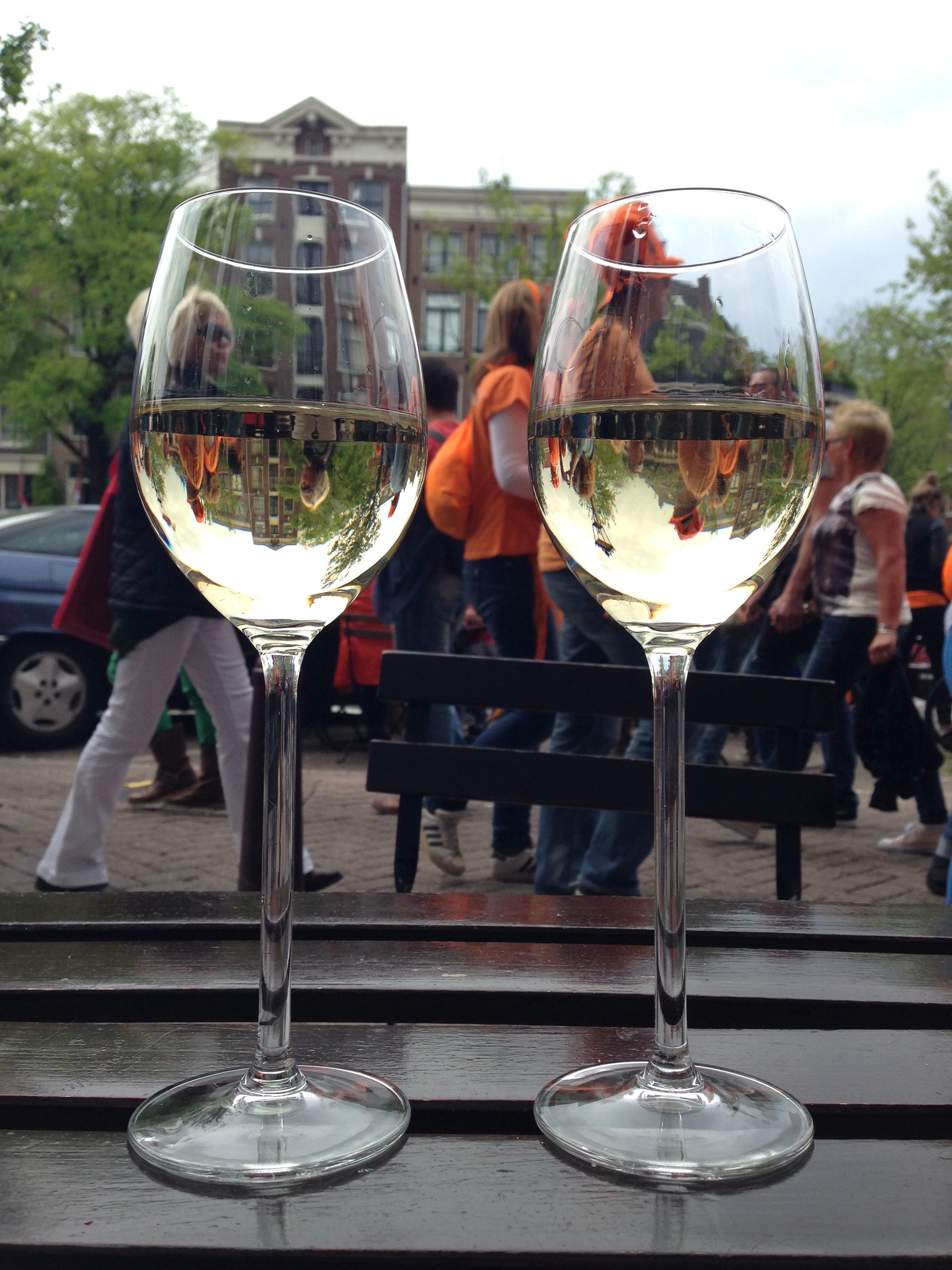 Als je aan eten denkt in combinatie met Koningsdag, dan kom je uit bij bitterballen, haring en consorten. Kun je dan geloven dat ik dubbel zo gelukkig ben als ik totaal onverwacht op een stampvolle Prinsengracht tijdens dat oranje feest bij envy strand? Tijdens TNW Europe had een digi foodie mij op dit adres gewezen, maar het is puur toeval dat we voor dit raam met nogal wat Michelin (Bib Gourmand) en Gault&Millau stickers belanden.