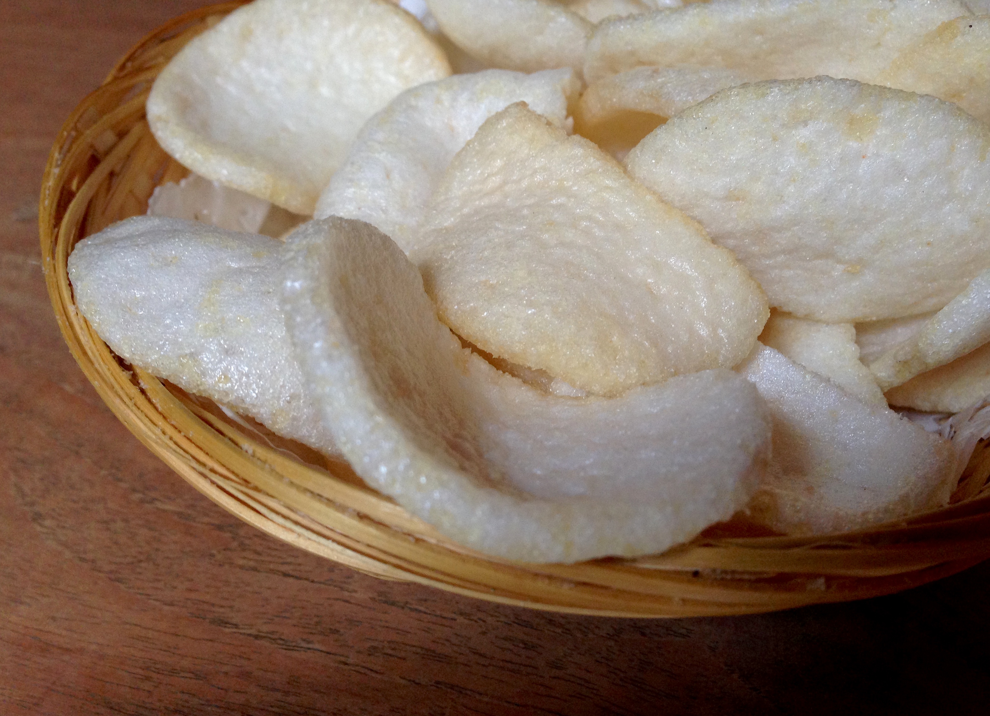 We storten ons als uitgehongerde leeuwen op de kroepoek. Op het moment dat onze dranken aankomen, zijn de vers gebakken garnalenchips al naar de eeuwige maagsapvelden verhuisd. De wijn drinkt trouwens gemakkelijk weg.