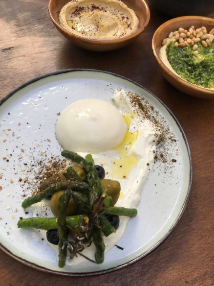 Vlak daarna volgt de labneh with olives and asperagus. Eerlijk gezegd verwachte ik mij aan een klassiekere serveerwijze, dus in die zin verrast Hümm me wel. De labneh – een midden-oosterse yoghurt / platte kaas – verschijnt in zijn authentieke textuur én in een moderne versie. Origineel!