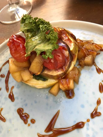 Als afsluiter krijgen we een taartje in z’n hartige vorm: sweet fig with goat cheese and confit tomato. Warme geitenkaas werkt altijd, ook in een midden-oosterse setting en zeker als soortement dessert van een gedeeld menu.