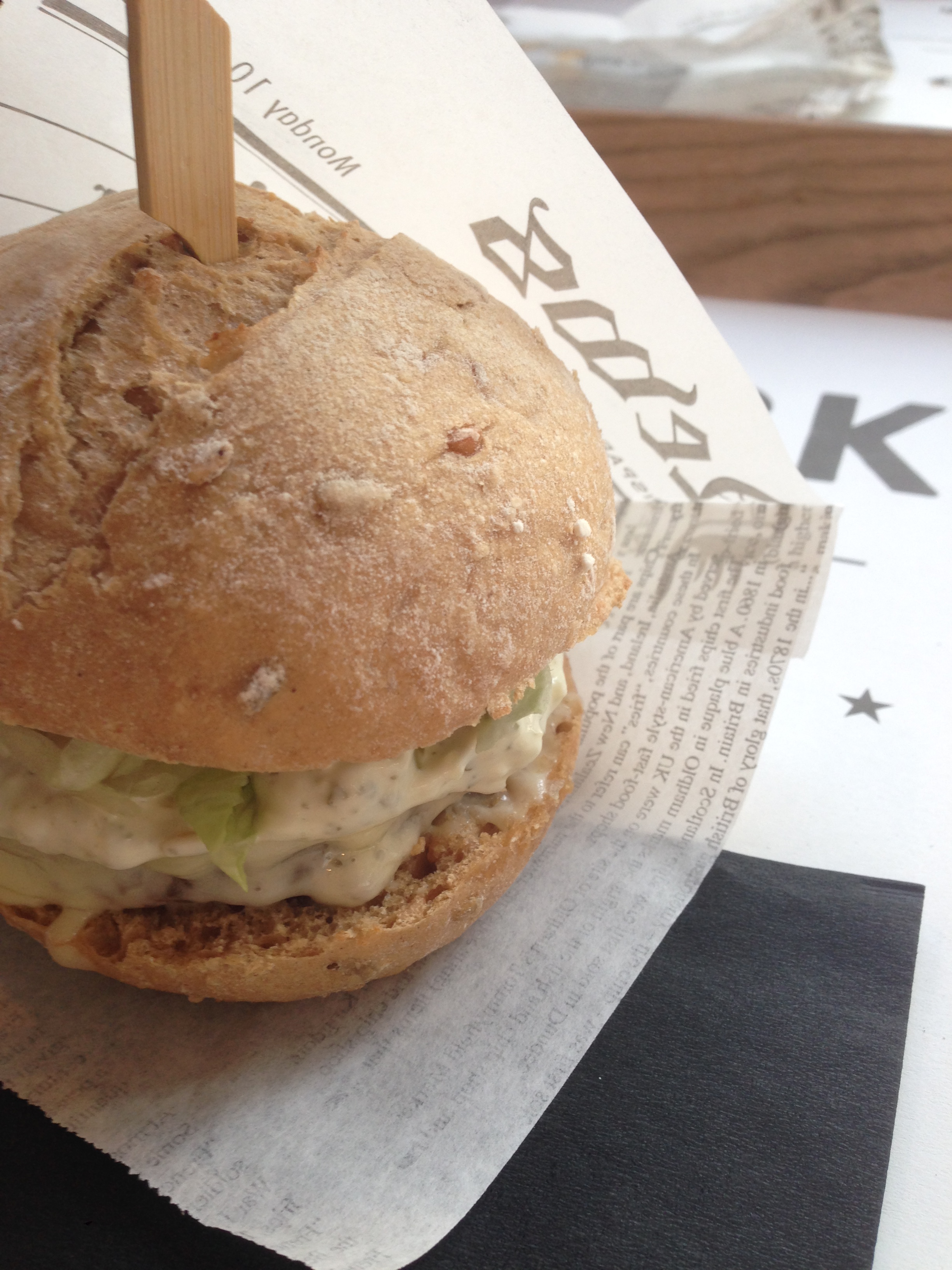 Het lief smult inmiddels van zijn burger. Ik probeer vooral niet naar die stevige JACK Fries op het tafeltje naast ons te kijken en wacht geduldig tot ik aan de beurt ben. Dan schiet het ineens door mijn hoofd dat JACKet Potatoes hier wel een grappige woordspeling zouden zijn. Ook mijn schijf flikkert ineens en ik veer recht…