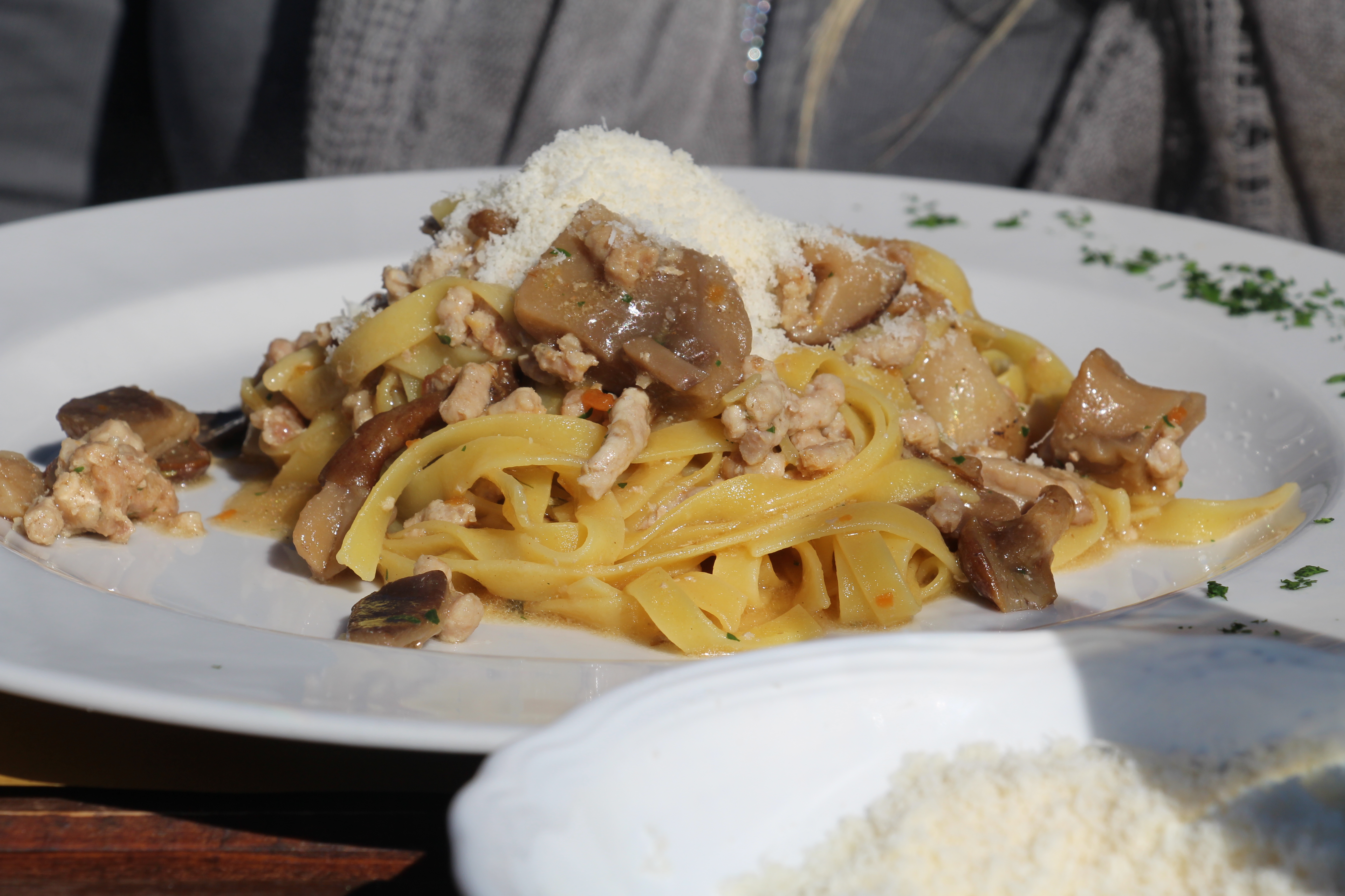 Wat is Italië toch een heerlijk land! Een ongedwongen lunch met eenvoudige, eerlijke producten en voor mij persoonlijk een atypische combinatie met besneeuwde bergen.