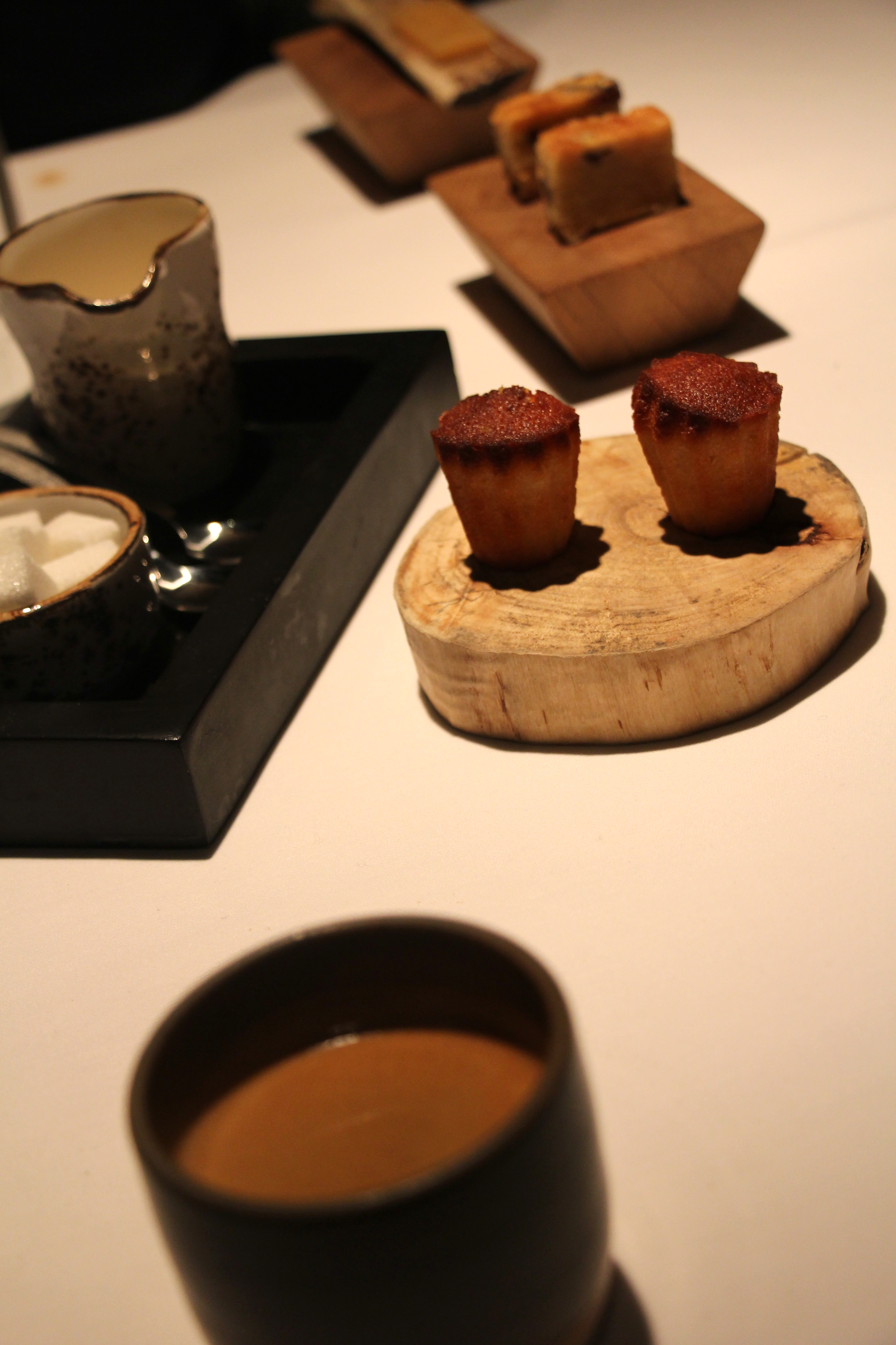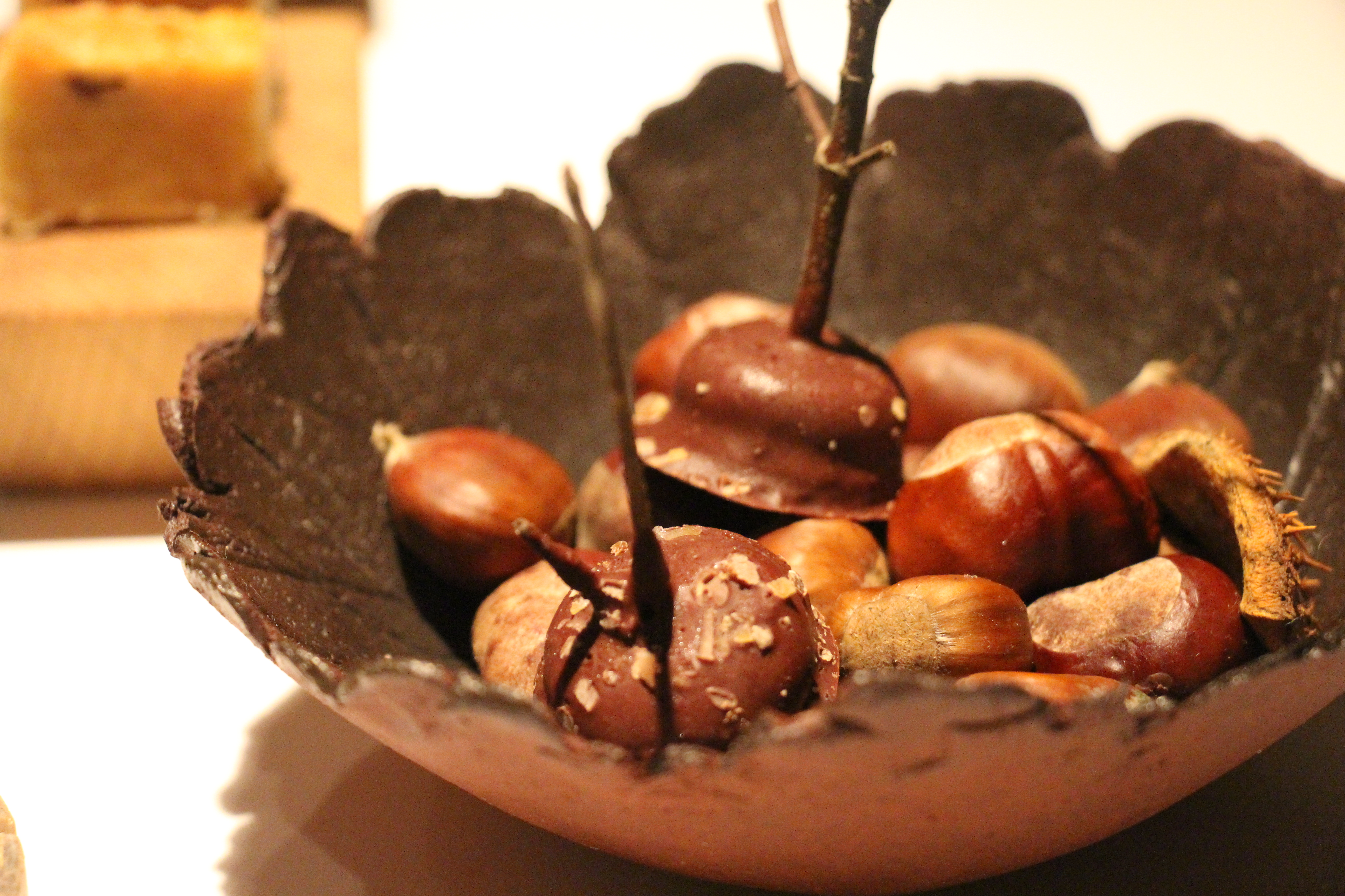 We smullen tot slot van heerlijke honingkoek, cakejes en ijspralines van kastanje. Alleen bij de caramel van rundermerg gaat er een rilling door mij heen, zoals ik eerder al aangaf huiver ik bij beenmerg. Ik heb het nochtans écht al geprobeerd (ondermeer bij Herberg In De Zon), het lukt mij helaas NIET.