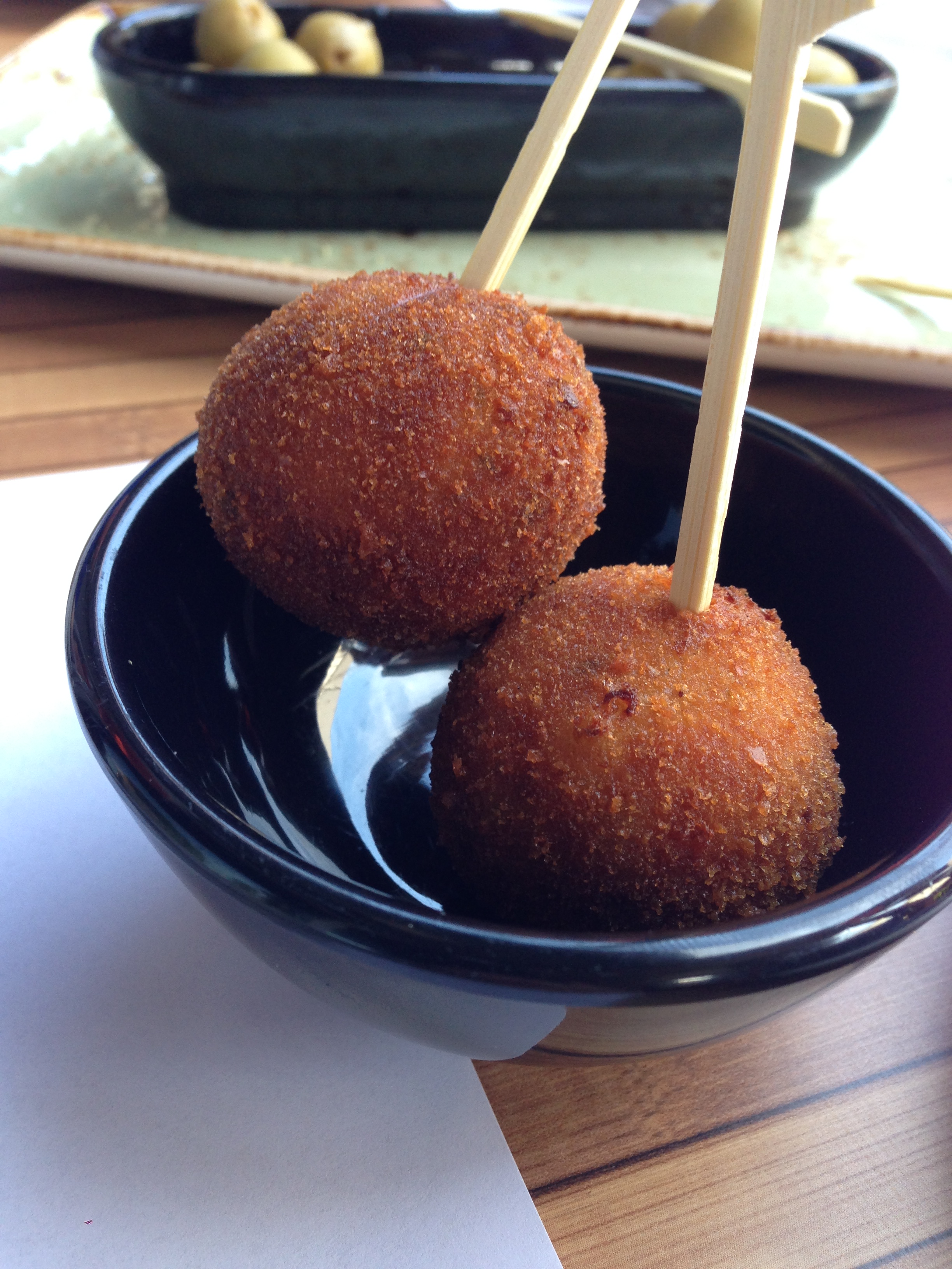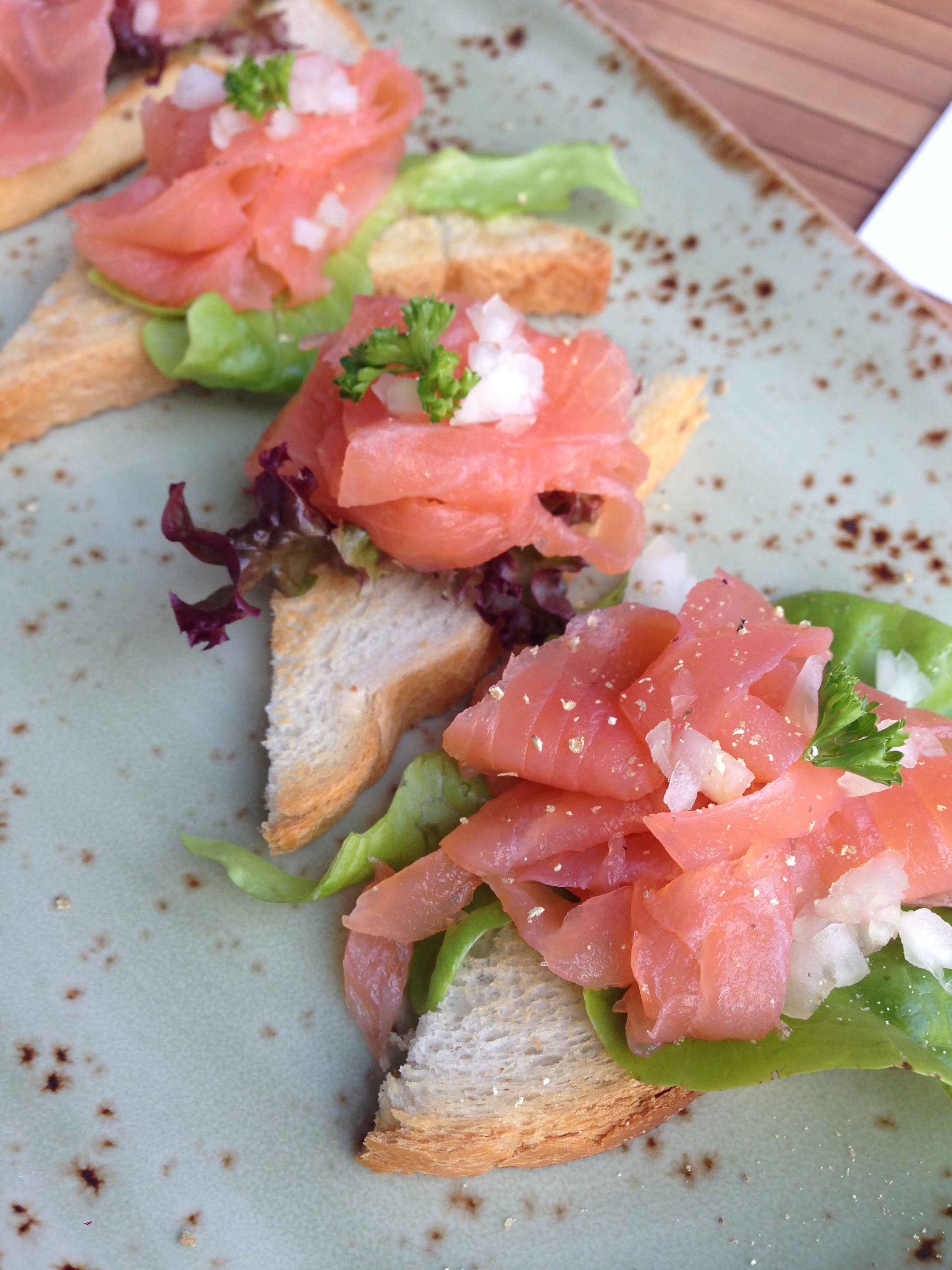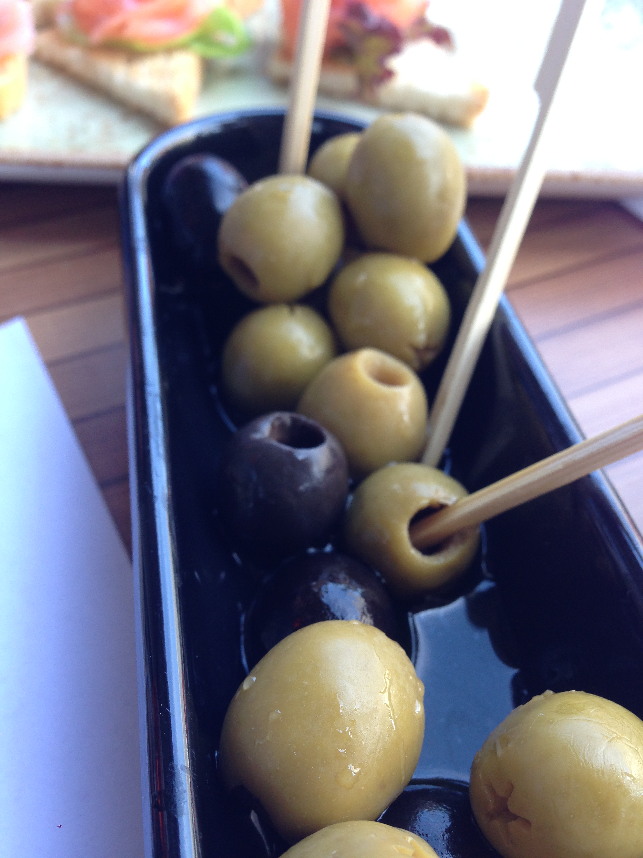 De roze bubbels blijkt niet helemaal mijn ding, de rest van de tafel drinkt echter met smaak. Verder zijn de olijven degelijk, de gerookte zalm échte kwaliteit en de garnaalkroketten helemaal top. Voor de Xste keer vertel ik hoe ik dit dringend zelf eens wil proberen thuis: ’s ochtends garnalen kopen aan zee, ’s middags pellen, maken en laten stijven in de koelkast, ’s avonds frituren en opeten.