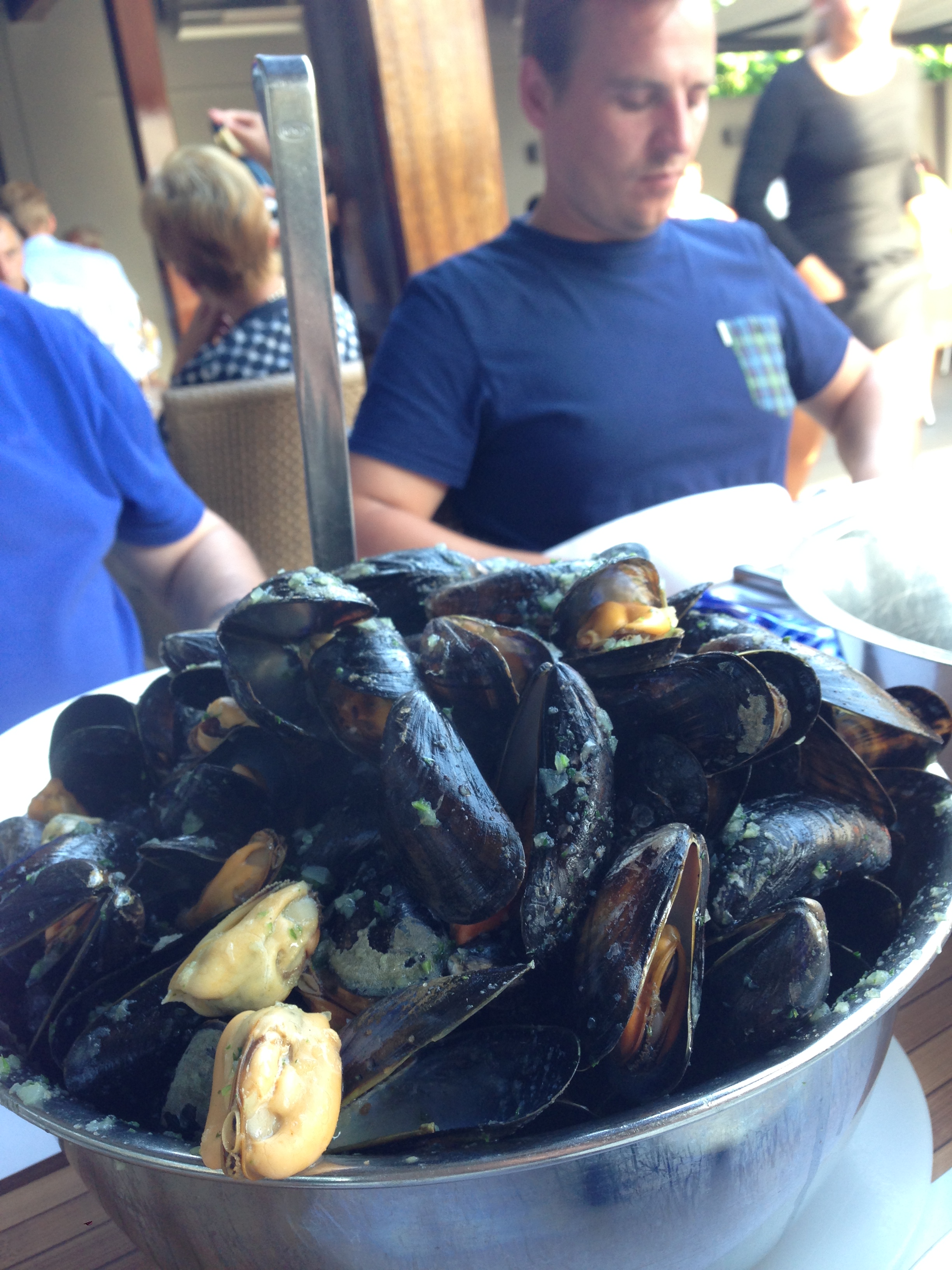 De keuze wordt snel gemaakt: vier maal de gekookte mosselen volgens familierecept (€ 27). Het woord ‘gekookte’ in combinatie met mosselen klinkt in mijn oren wat vreemd. Gezien we in een mosselrestaurant zijn, maak ik mij geen grote zorgen. Desalniettemin associeer ik mosselen niet met koken, dat toch voor mij om iets onderdompelen in vocht van meer dan 100°C gaat. Misschien tevens even opmerken dat € 27 meer is dan wat wij in Vlaanderen doorgaans betalen voor mosselen (€ 21 à 24). Niet dat dat een probleem vormt, alleen denk je automatisch dat eten dichter bij de bron ook goedkoper zal zijn.