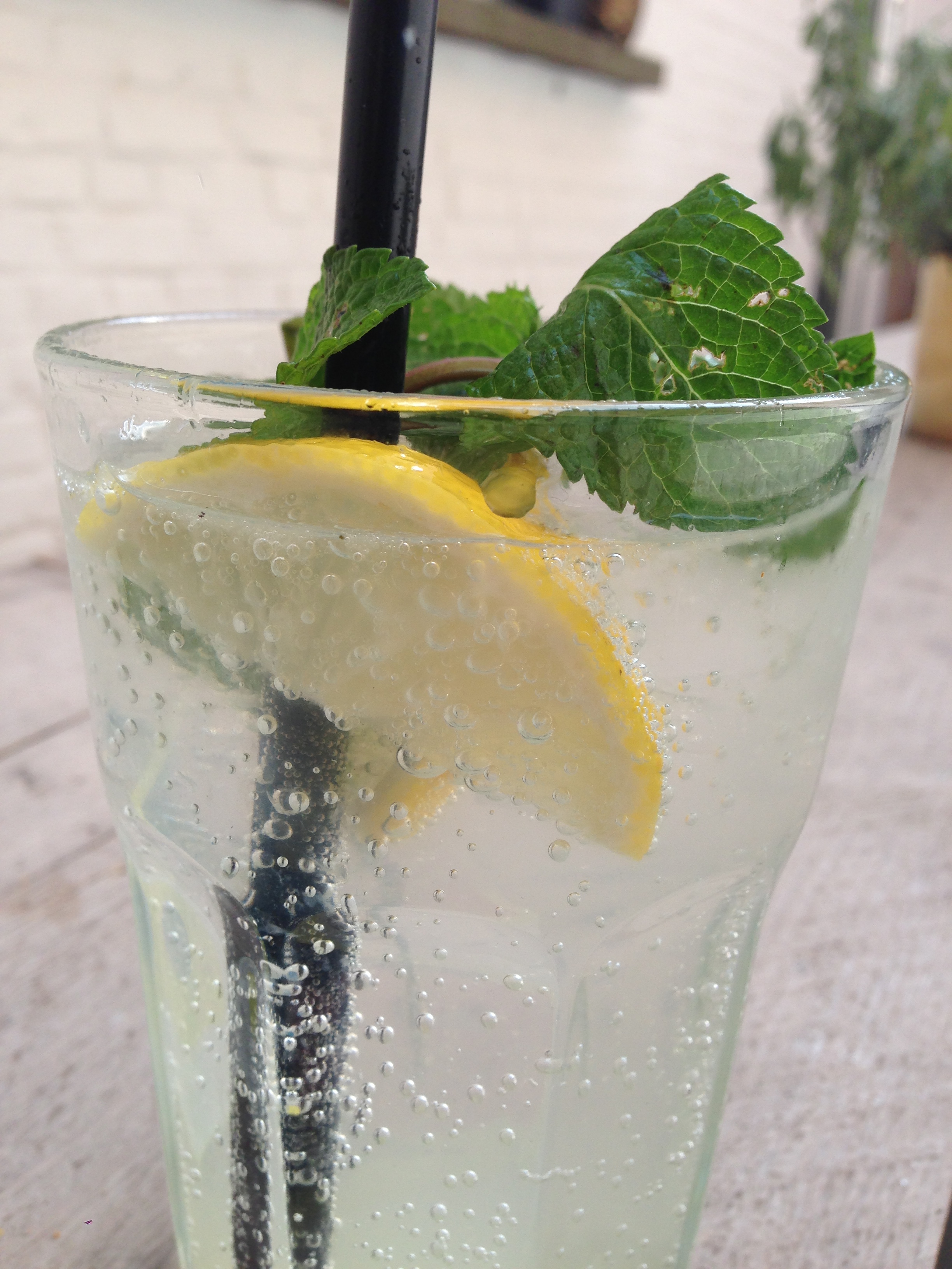 De hoekige NOEN font komt terug op de menukaart en daar laat ik mij bij de limonades verleiden tot de verse citroenlimonade met munt. Ideaal gezelschap op een gezellig stadsterras tijdens een nazomerse namiddag!