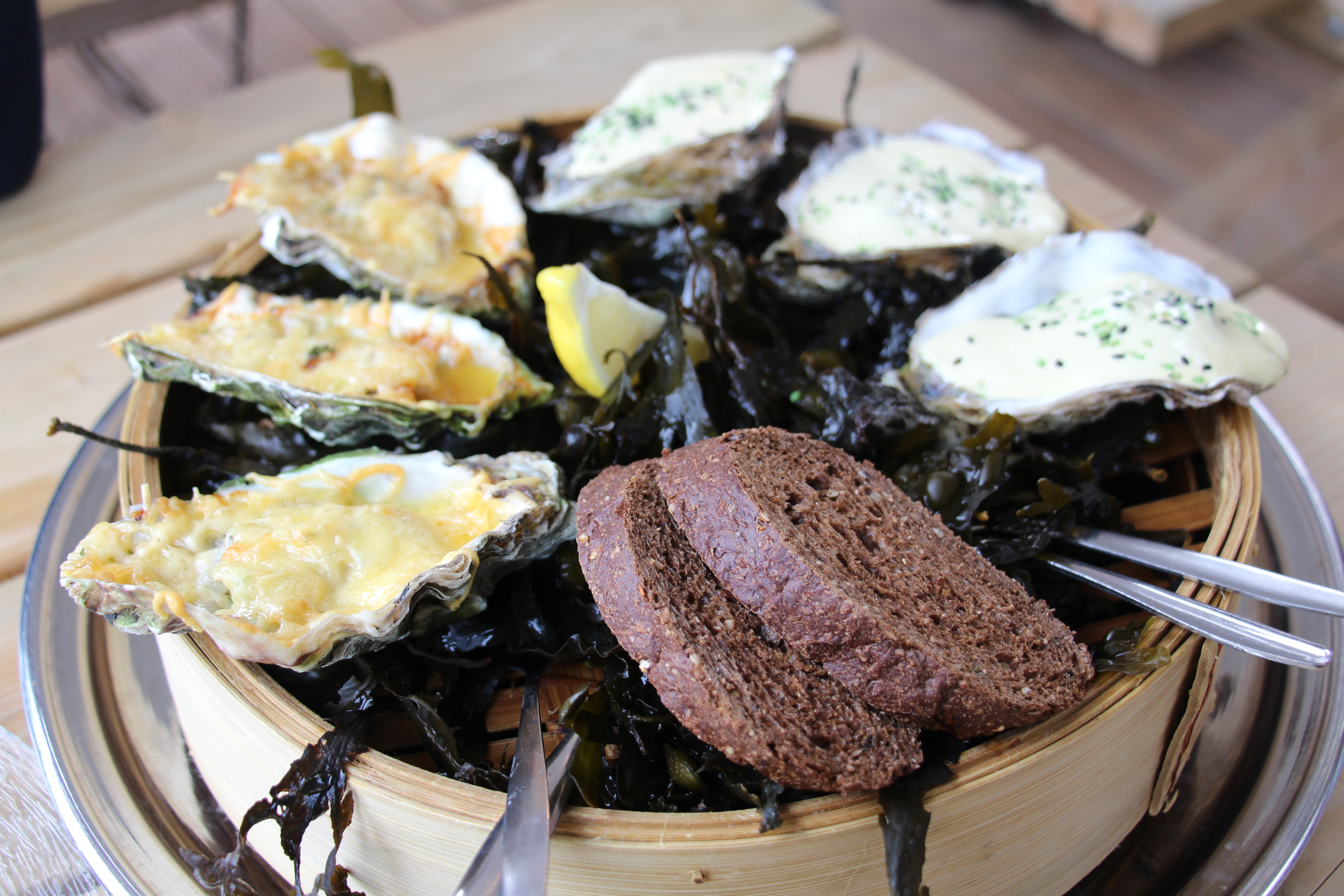 We starten met de Zeeuws Platte ‘IMPERIAL’ (6 stuks – € 13). In Vlaanderen eten we vaker Creuses, dus ik vind het fijn om zo dicht bij de bron deze Platte exemplaren te degusteren. Mmmmm, ik probeer ze zo puur mogelijk (dus zonder al te veel peper of citroen) te eten!