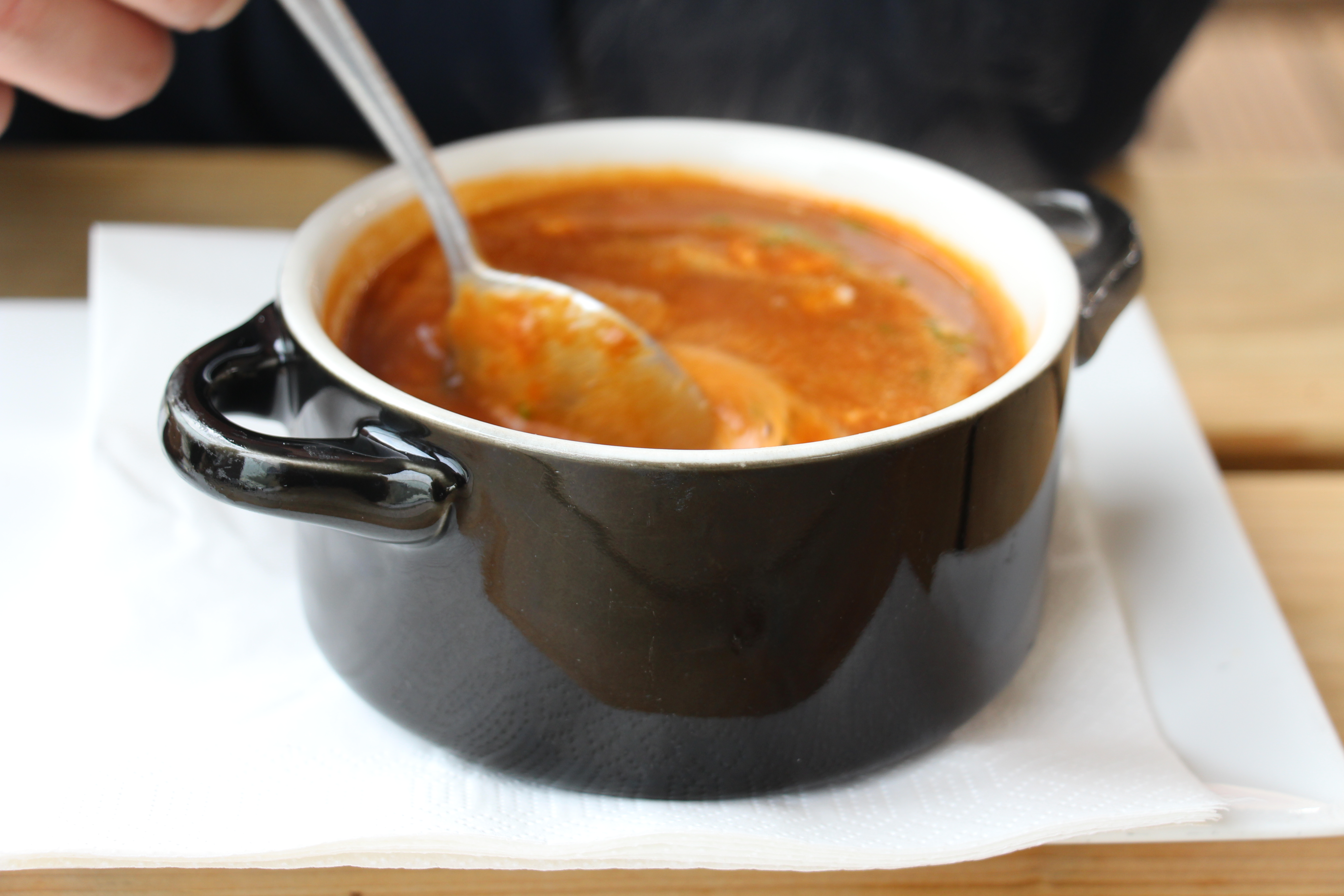 In mijn hoofd speelt al de ganse tijd iets anders: die gekookte mosselen (€ 12,50 voor 750 gram), hoe zouden die hier bereid worden? Reden genoeg om te proeven, want mosselen koken klinkt voor een Belg toch wat vreemd… Ze blijken op dezelfde manier klaargemaakt als bij ons, alleen met iets meer (fijngesneden) groenten: prei, tijm, zeekraal. Met deze tweede lokale trots in de maag durf ik spreken van een perfecte lunch!