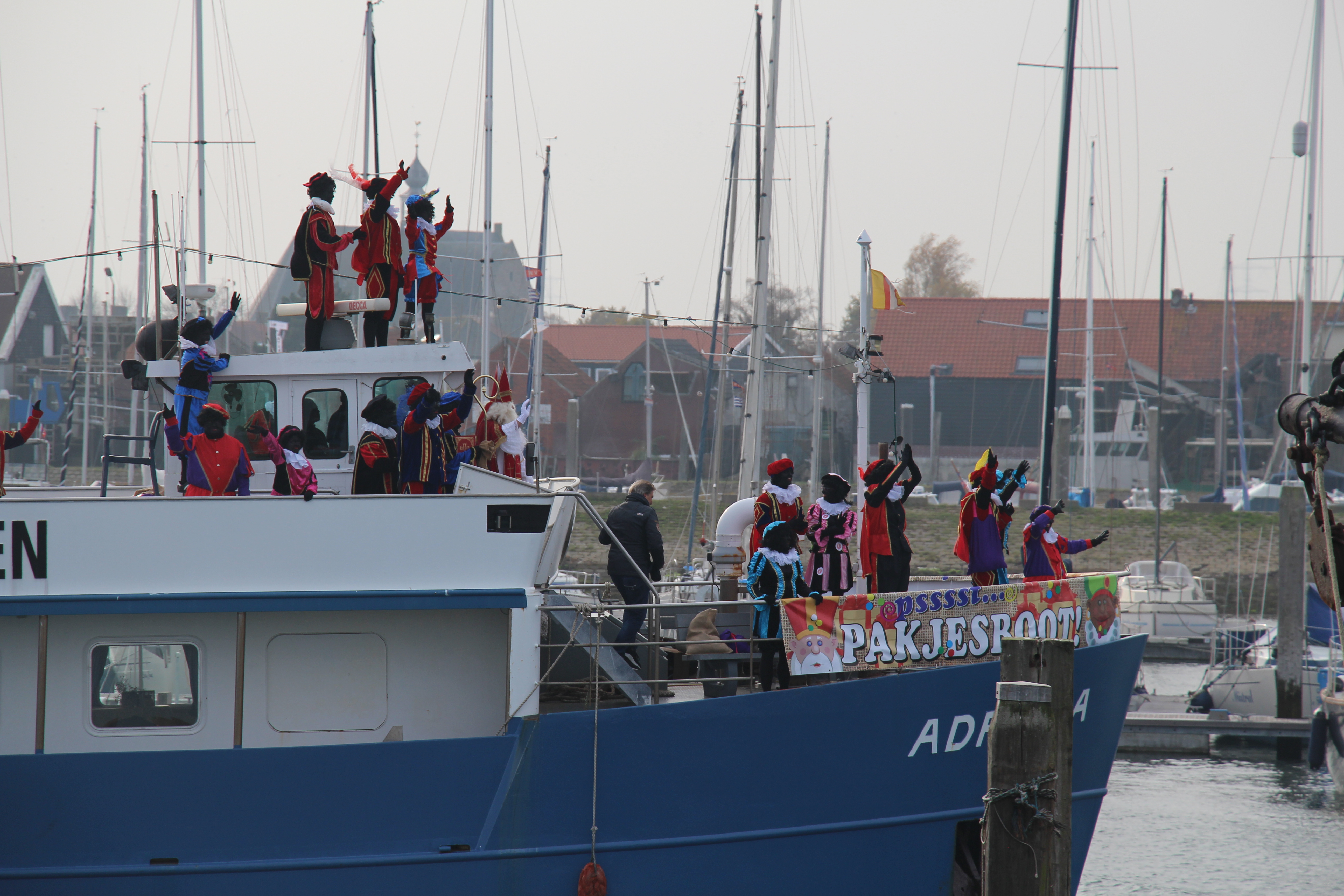 Nog even het kind in ons naar boven laten komen met de aankomst van de Sint en z’n (overduidelijk) Zwarte Pieten… In Yerseke liggen ze niet wakker van de pietenhetze. Ik denk even aan hoe wij als kind bij de aankomst van de Sint in Nederland per grote uitzondering een ganse dag voor de televisie mochten kamperen. Feest!