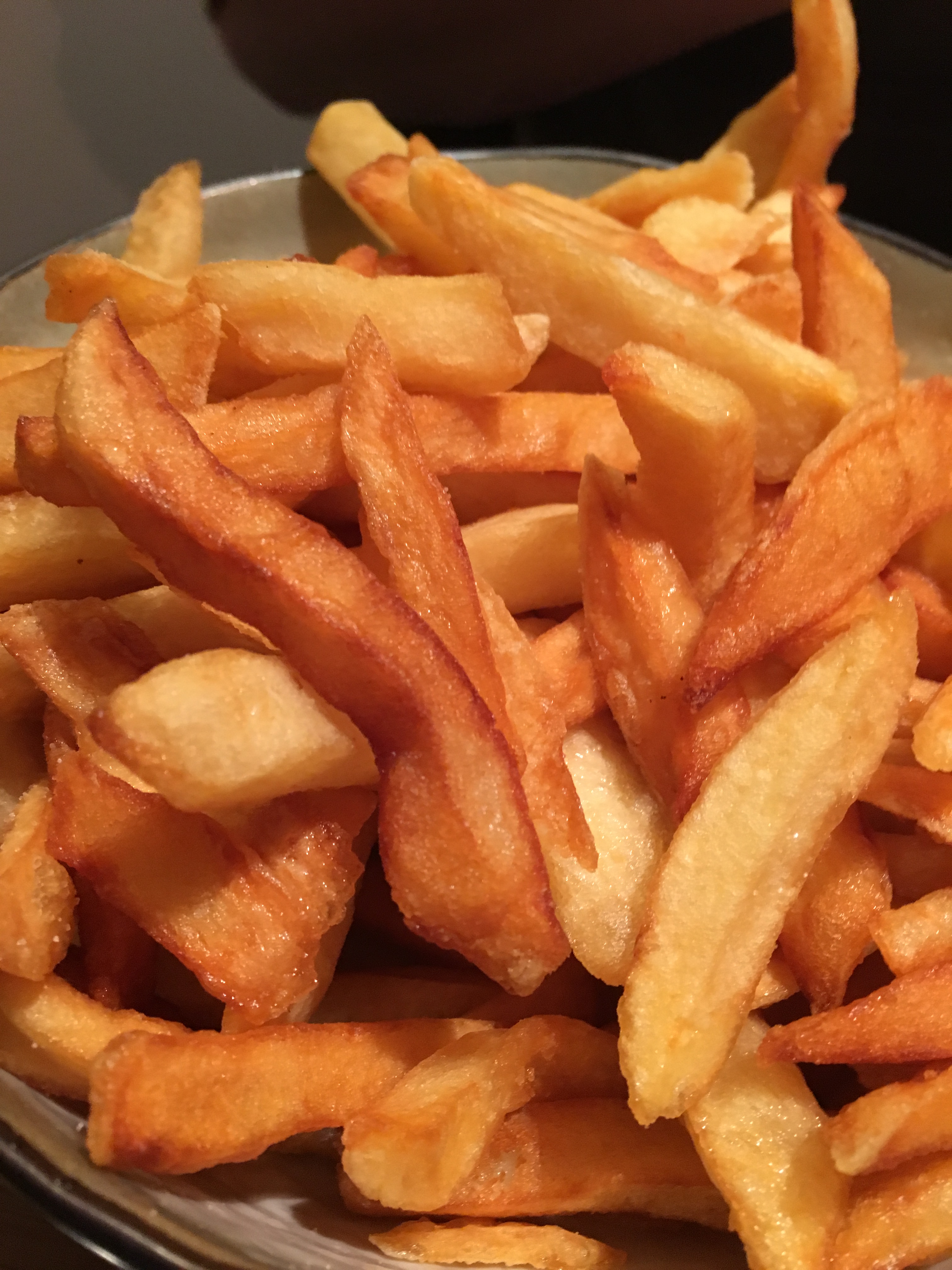 De zeetong smaakt mij, evenals de frieten. Ook al zijn we in België, het blijft een kunst om zo’n perfect gevormde en gebakken frietjes op tafel de zetten. Ik haal met smaak filet per filet van de graat. De grijze garnalen, de gebruinde boter, het plukje krulandijvie en het partje citroen maken dit visgerecht af. En o ja, dan zwijg ik nog over het kleine bokaaltje met duidelijk huisgemaakte mayonaise dat vooral door de heren geconsumeerd wordt. Zie mijn eerder crappy snapshot als je nog even verder scrollt…