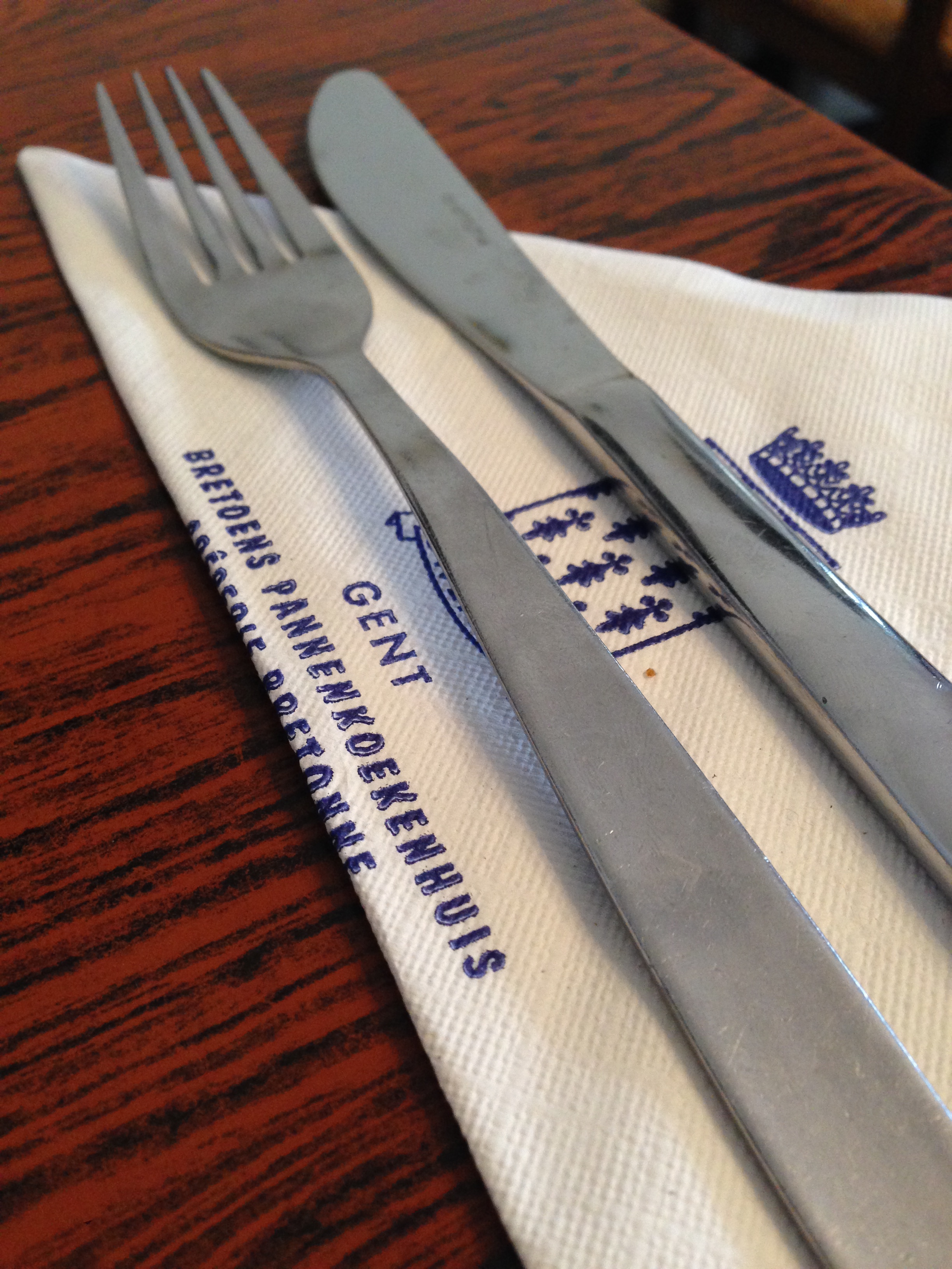 We gaan binnen langs de Bennesteeg en kiezen een tafeltje aan die kant uit. Dit Bretoense pannenkoekenhuis ziet er uit alsof het de laatste vijftig jaar quasi niet veranderd is, hetzelfde geldt voor het gros van de dametjes die er werken – behalve hun haarkleur dan. Authentieker kan wellicht niet!