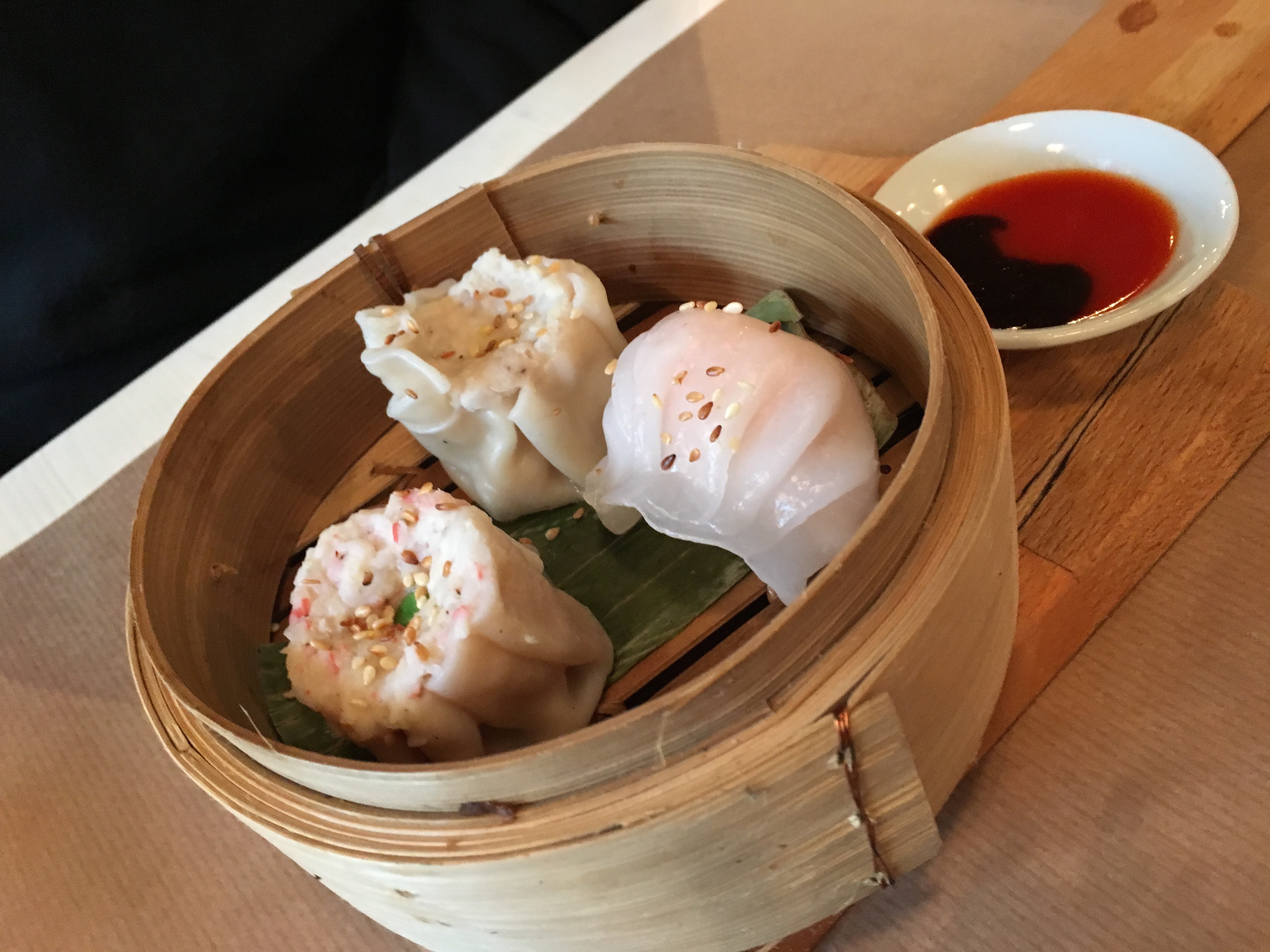 Het vraagt wat durf om dim sum (‘steamed filled pastries served in small steamer basket’) te bestellen in een Vietnamees restaurant. Ik vraag de thâp câm, de mix (€ 5,50). Onze vrees bleek terecht, want voor de dim sum hoeven we niet bij Pho 61 terug te komen… Voor wat volgt daarentegen!