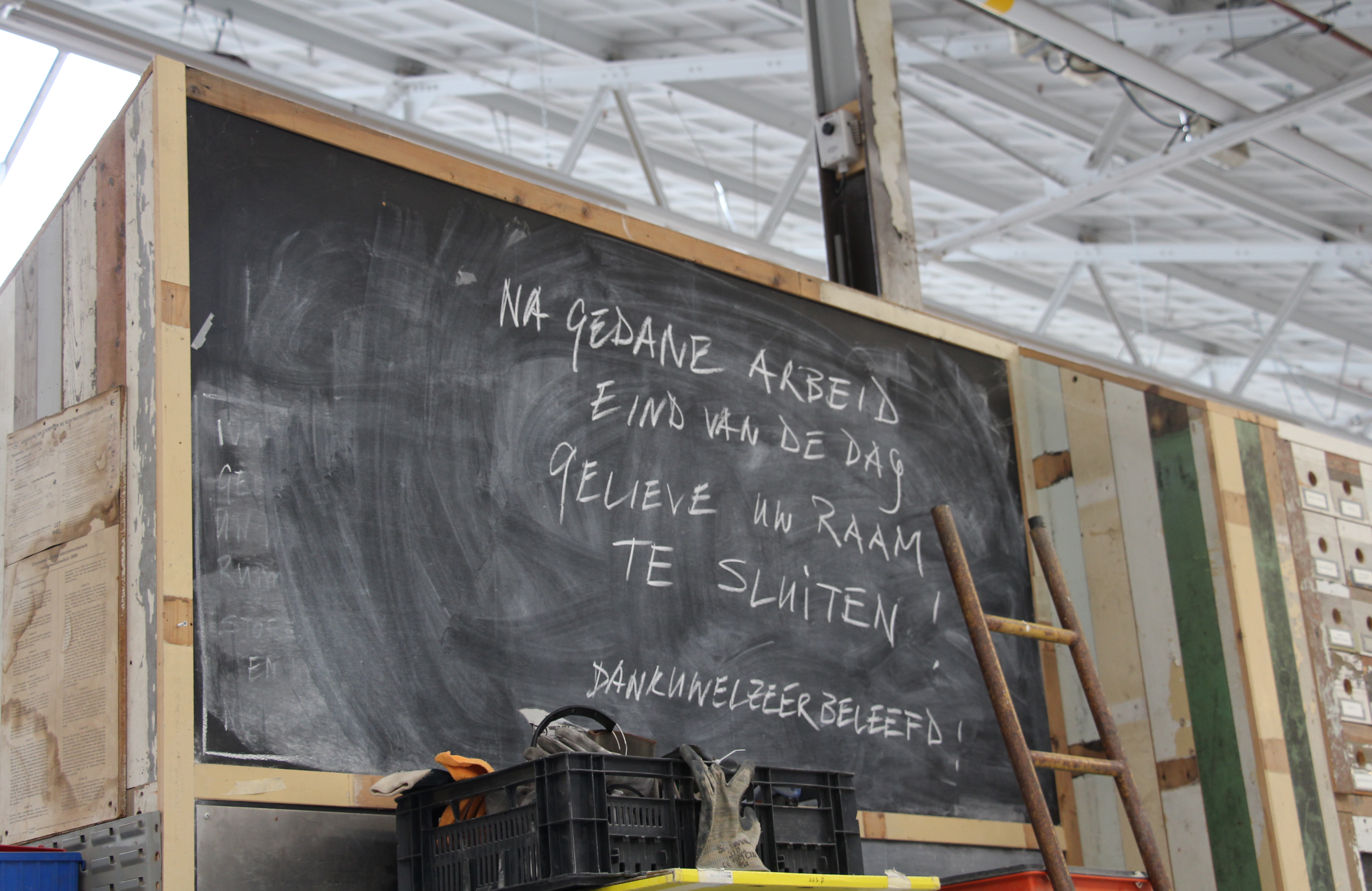 De Nederlandse designer Piet Hein Eek is een ondernemend man. In Eindhoven bracht hij een oude fabriekssite volledig tot leven. Niet alleen met zijn atelier, tevens met plaats voor andere jonge onderwerpers (misschien deels in het teken van Dutch Design Week), een restaurant, … En volgens onze compagnon en tevens DDW kenner groeit de site nog elk jaar en worden de eetplekken permanenter van aard. We lopen er net op het moment van de lunch rond. Perfecte timing!