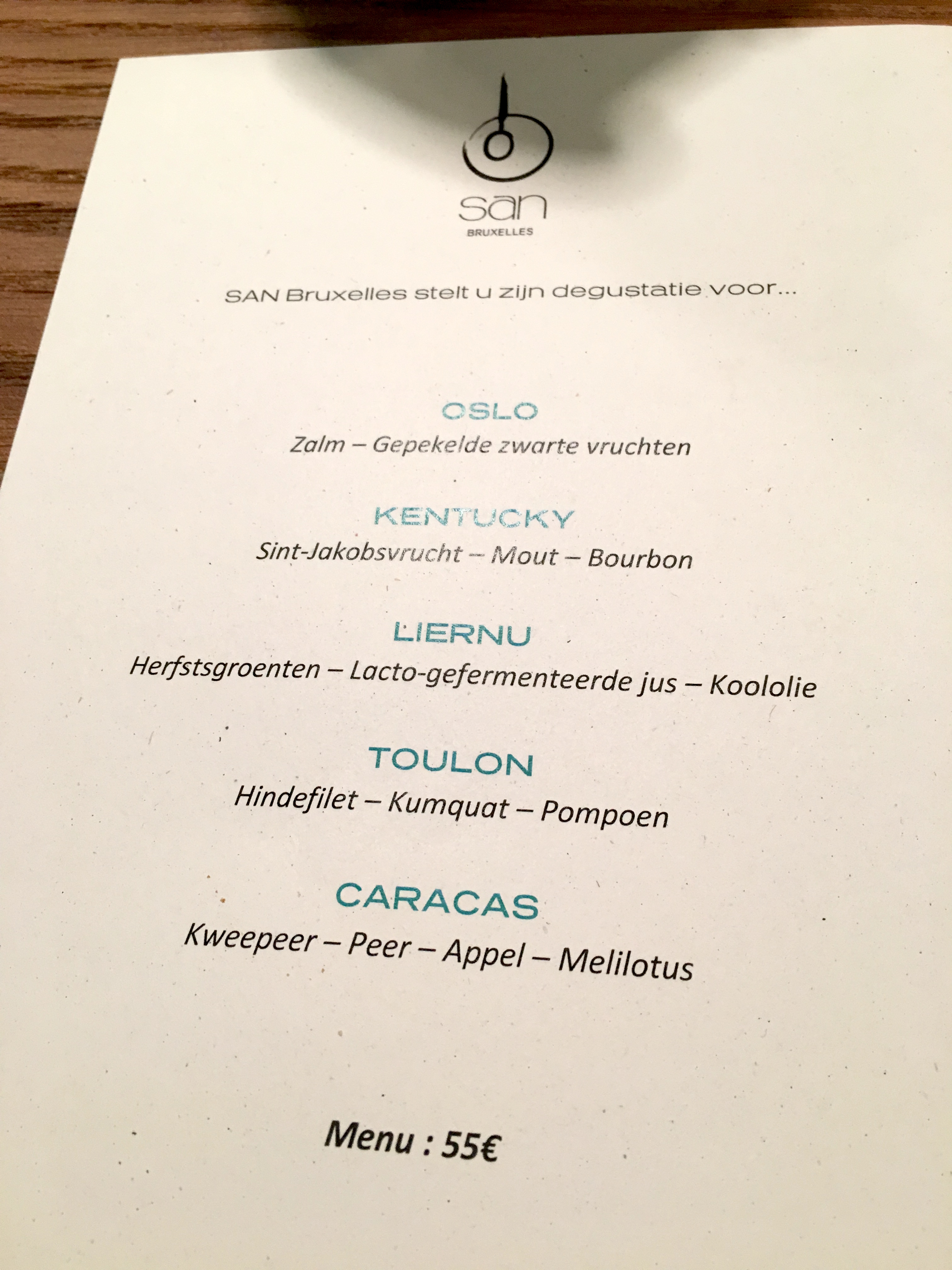 Zo omschrijft chef Sanghoon Degeimbre zichzelf. Ik tafelde helaas nog niet in L’air du temps, zijn tweesterrenzaak in de provincie Namen. Wel mocht ik ooit al van proevertje doen op events als Culinaria. Een tijdje terug opende Sanghoon echter een tweede restaurant in hartje Brussel (Vlaamsesteenweg): SAN – zijn roepnaam, I assume.