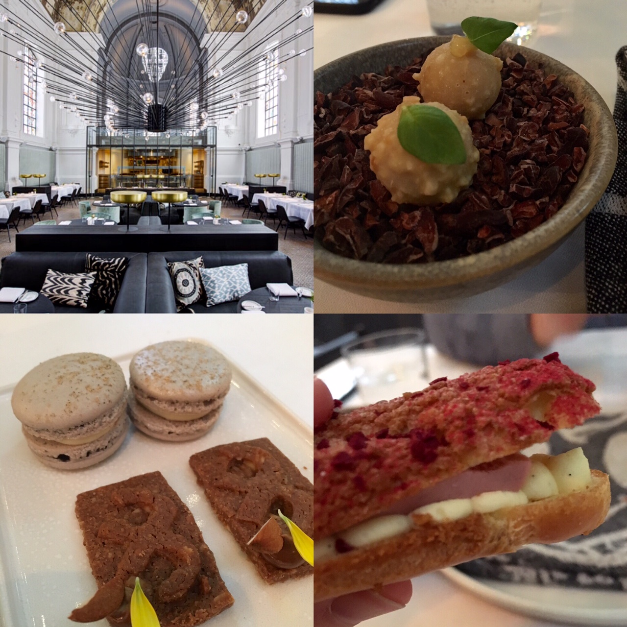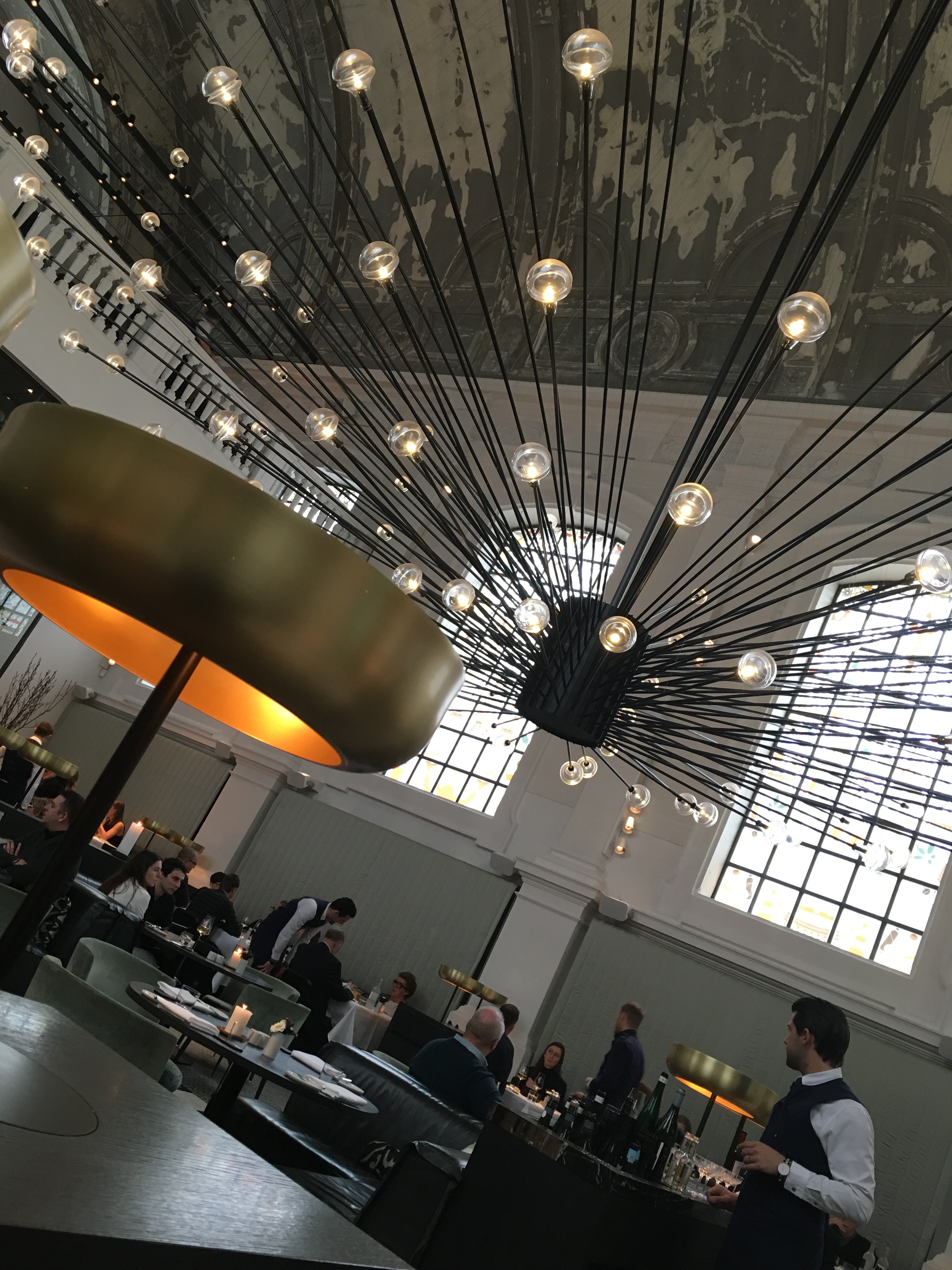 De parking blijkt verhuisd te zijn. Bij ons vorige bezoek – toen aan The Upper Room Bar op het eerste verdiep – stonden we nog onder het Paradeplein geparkeerd, dit keer op een paar minuten wandelafstand. Natgeregend komen we aan, de hartelijke ontvangst doet de regendruppels meteen verdampen – al besef ik hoe cheezy dit klinkt. We krijgen een tafel helemaal voorin met fenomenaal zicht op de keuken. De enige die een beetje triest kijkt, blijkt mijn meneer: de jarige mag namelijk van het uitzicht op de de keuken, de kapel en het designwise sublieme interieur genieten, terwijl hij het met enkel mijn lieftallige gezichtje – ahum! – in zijn gezichtsveld moet doen.