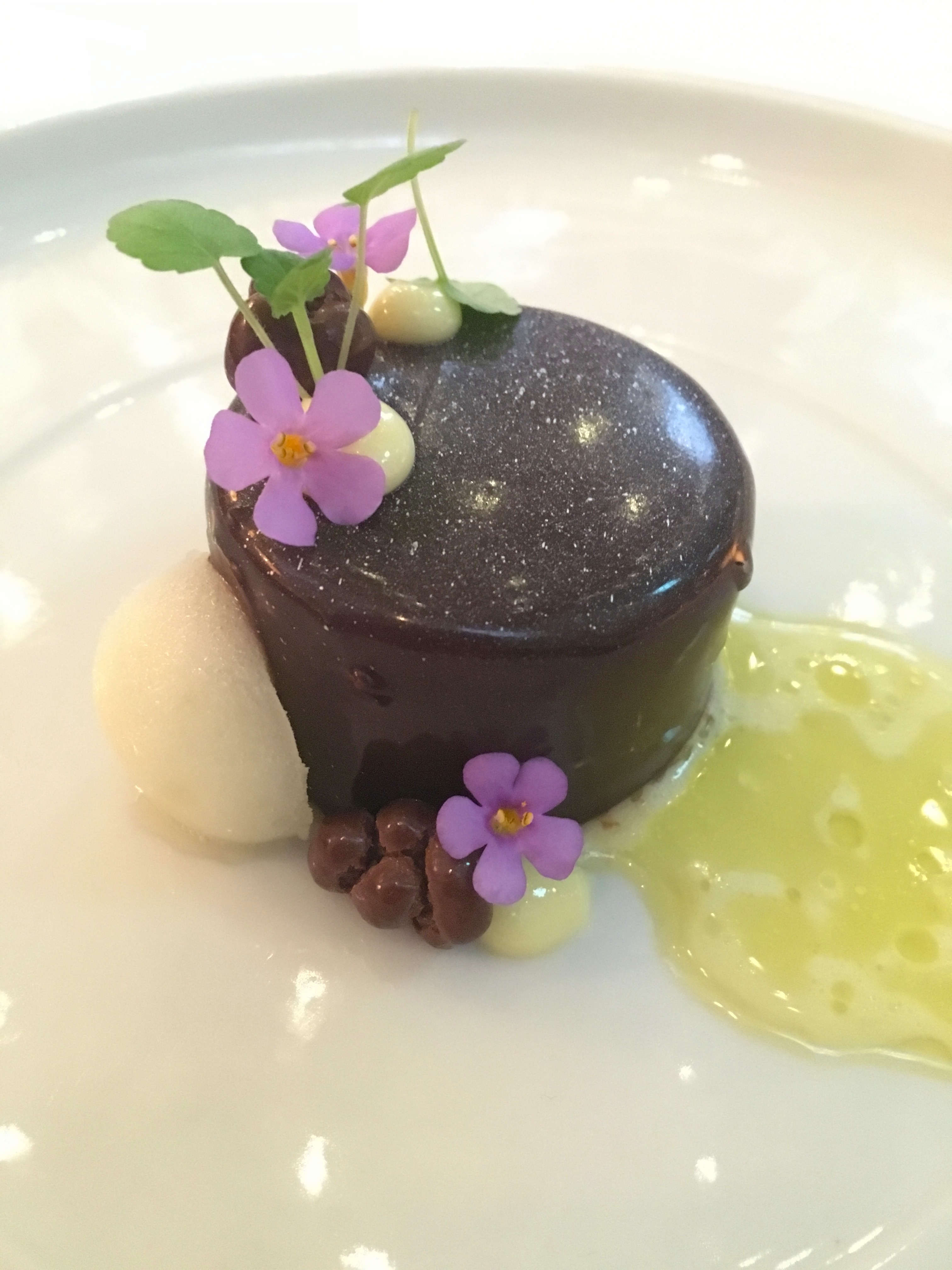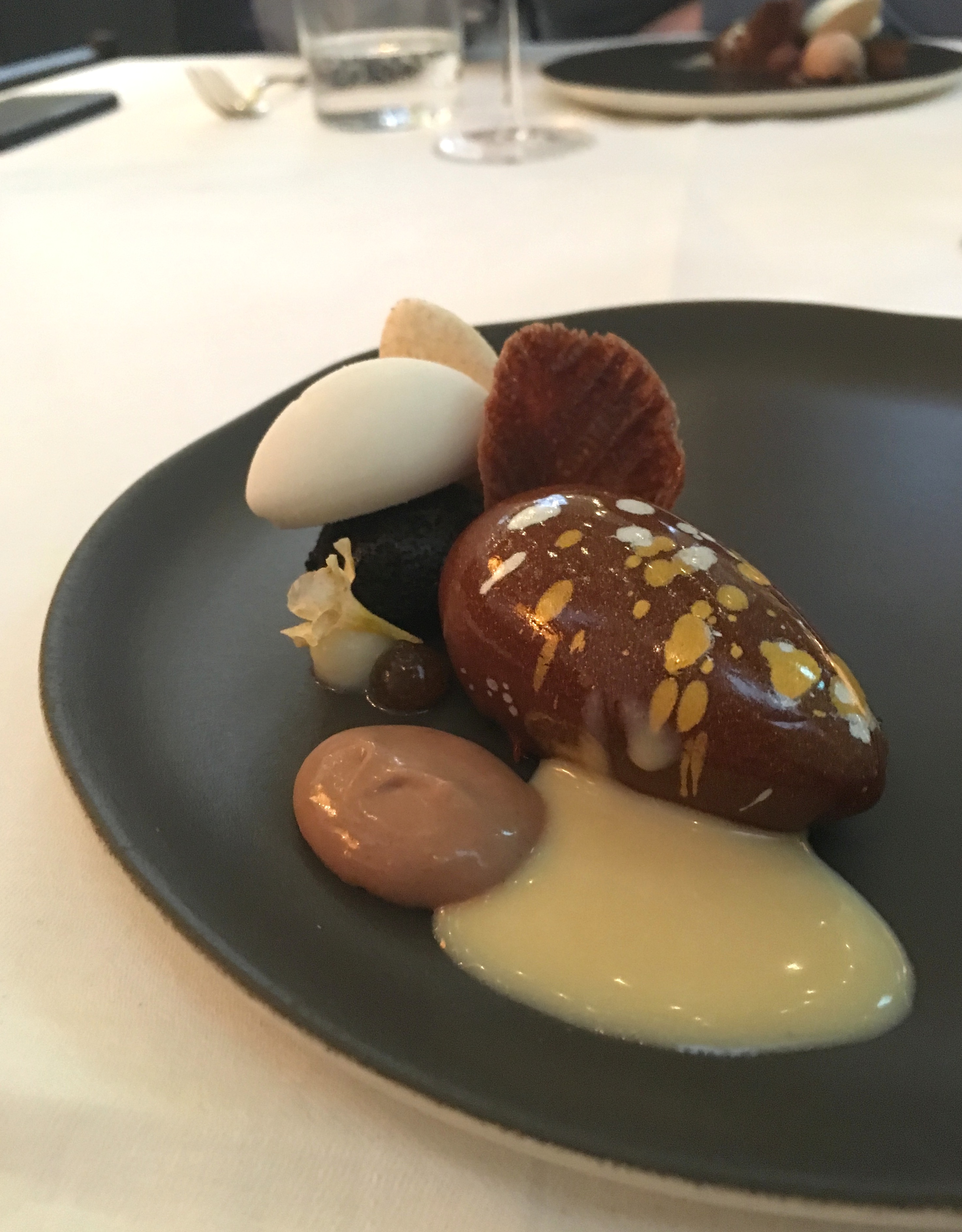 Tijd voor de desserts! Het eerste bord overtuigt een niet-zoetekauw als ik meteen: chocolade, aardpeer en bier als hoofdbestanddelen. Vooral het ijs van aardpeer blaast mij van mijn nylonkousen. Fenomenaal lekker, meer kan ik daar niet van zeggen.