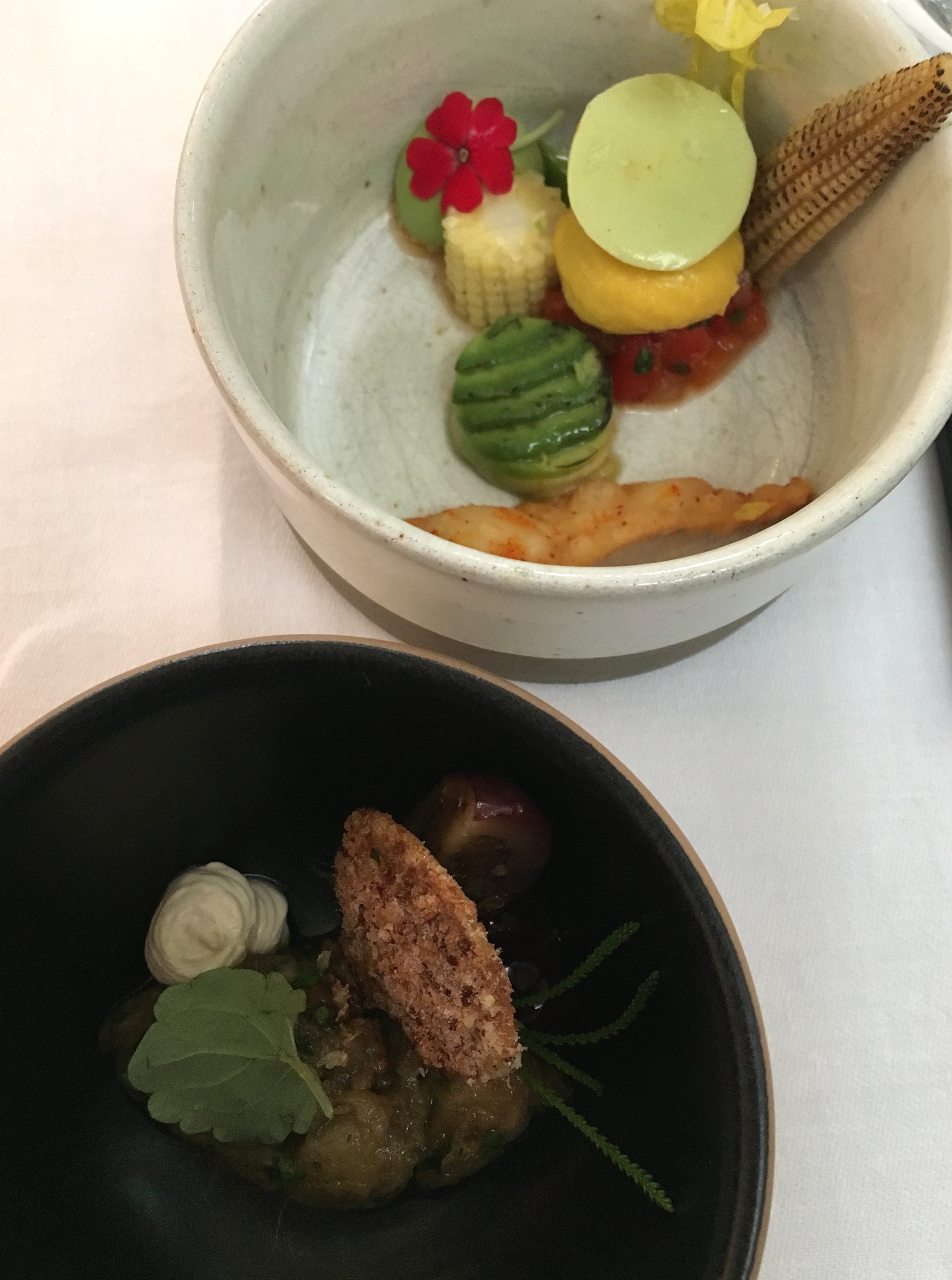 En we zijn vertrokken voor de zes voorgerechten. Ik ga telkens – naar mijn eigen gewoonte – iets meer door op het eten dan op de wijn.
