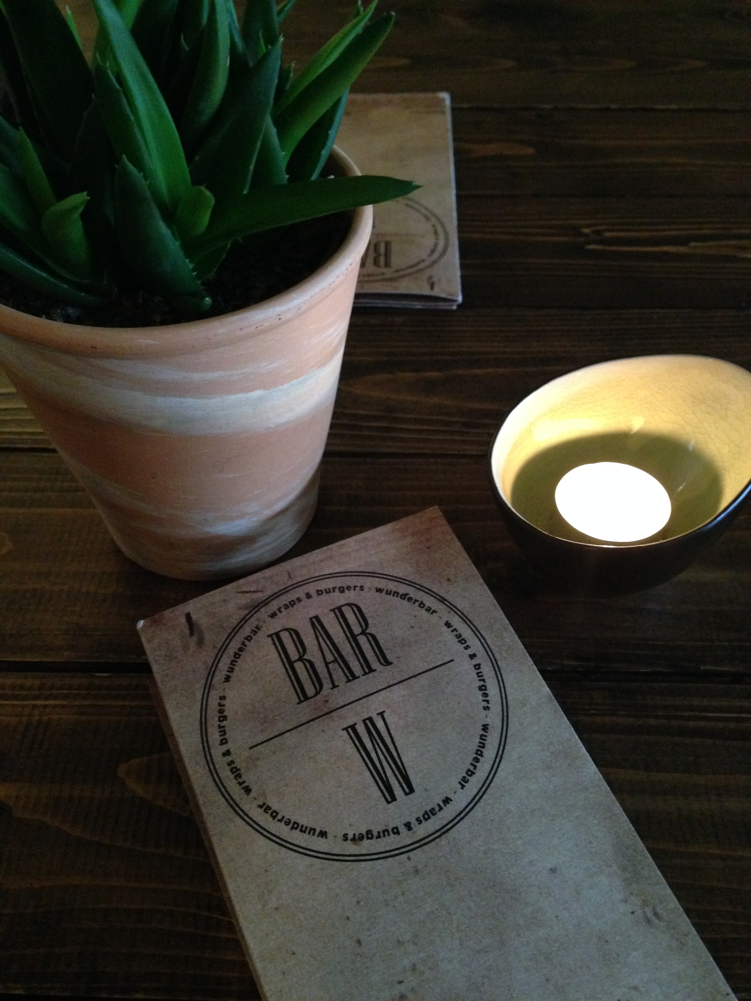 Op een donderdagmiddag parkeer ik vlakbij de Muidebrug en tegenover onze bestemming: de vrij nieuwe burgerbar Wunderbar. Bij het binnenkomen bevalt de inrichting van de keuken, maar de geur van gebakken burgers slaat wel vrij agressief in ons gezicht. Gelukkig hebben we daar in het achterste eetgedeelte weinig tot geen last van. We nemen plaats aan de gereserveerde tafel met een laag tête-à-tête-gehalte – we zitten met andere woorden vrij ver van elkaar verwijderd.